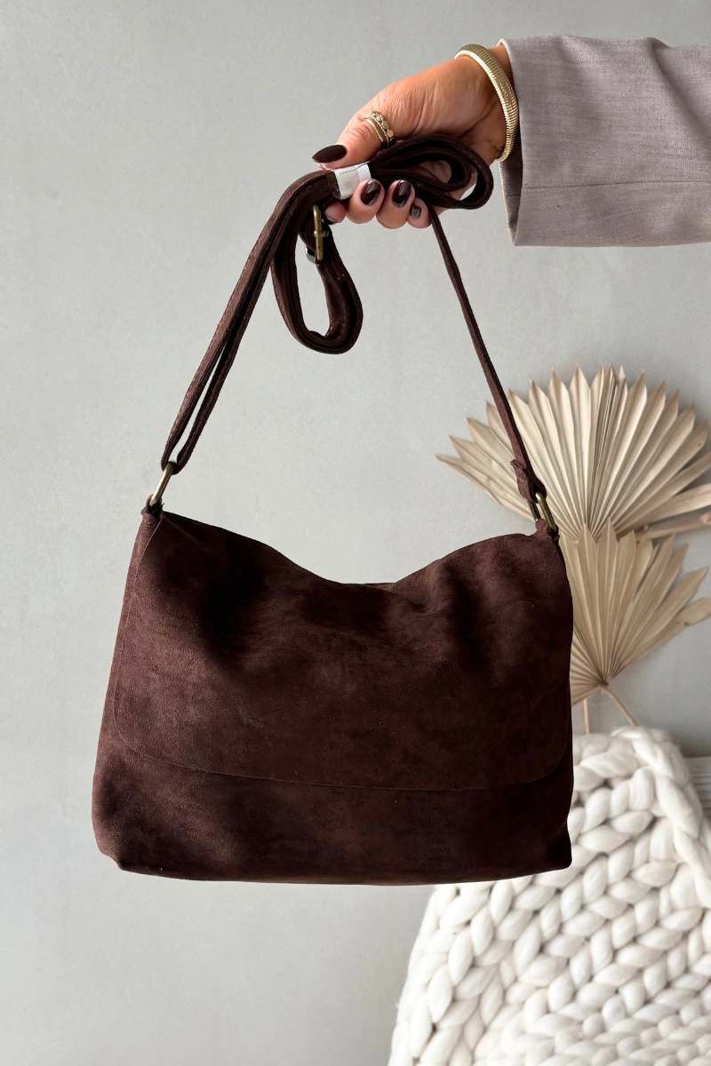 Torebka Listonoszka Z Eko Zamszu Czekoladowa Carenza