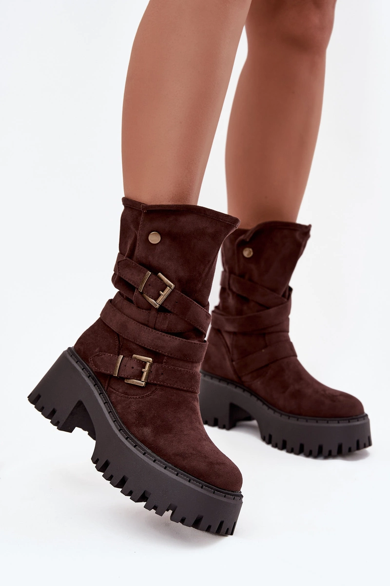 Botki Damskie Na Masywnym Obcasie Z Klamrami I Paskiem Czekoladowe Nerelisa