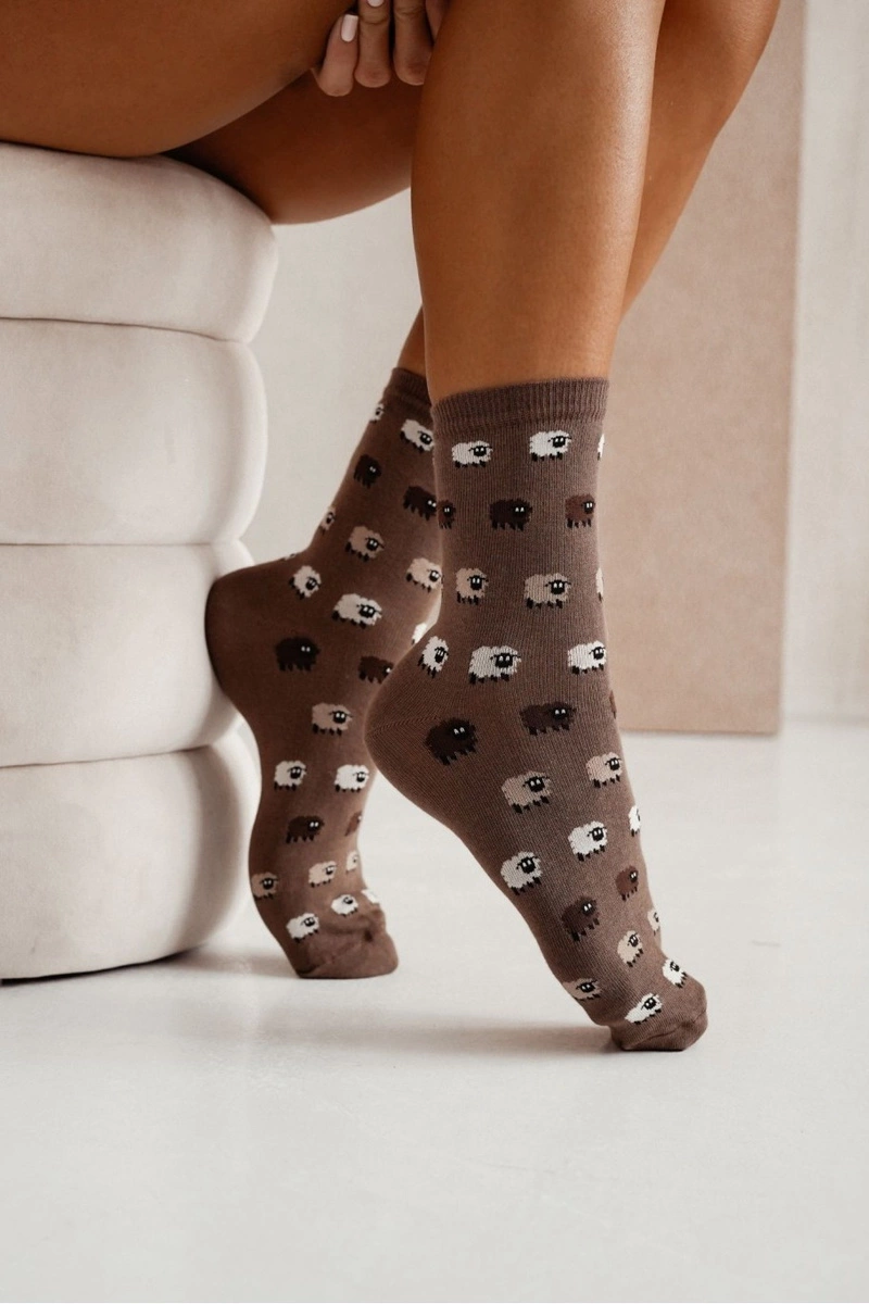 Skarpetki Damskie Owieczki Brązowe