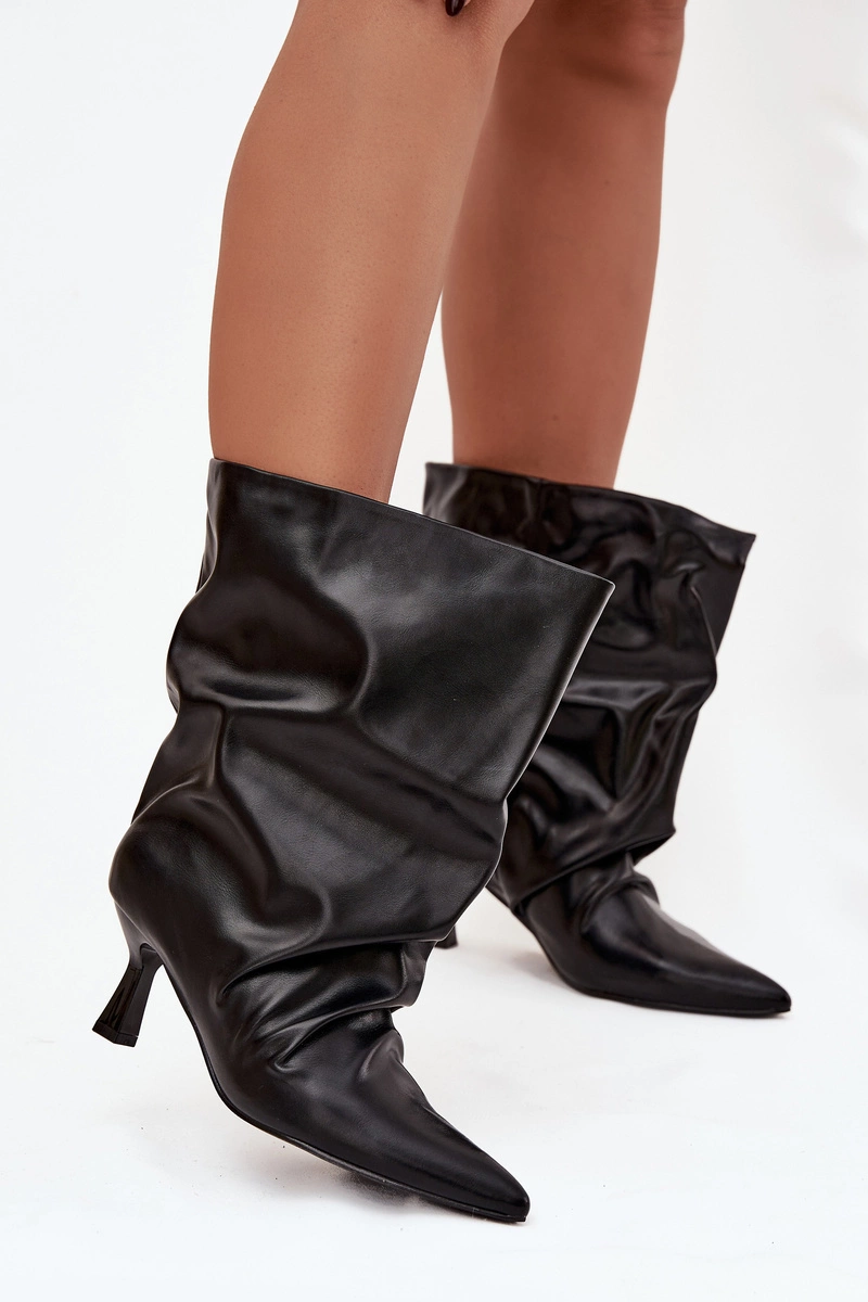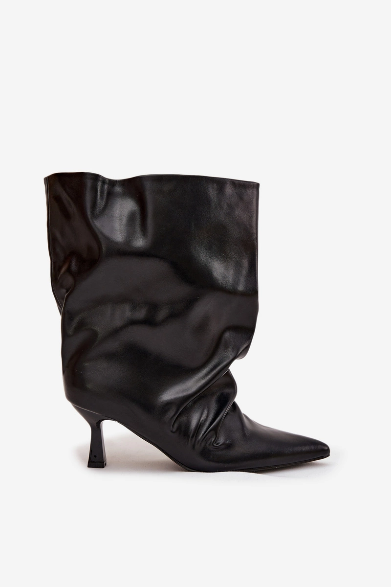 Wsuwane Botki Damskie Na Szpilce Z Marszczoną Cholewką Czarne Inarisse