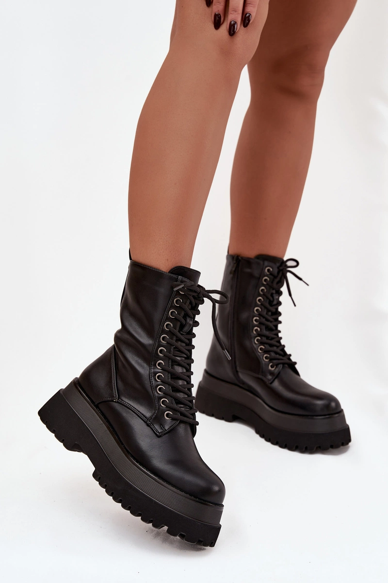 Botki Workery Damskie Ocieplane Na Masywnej Platformie Czarne Felisse