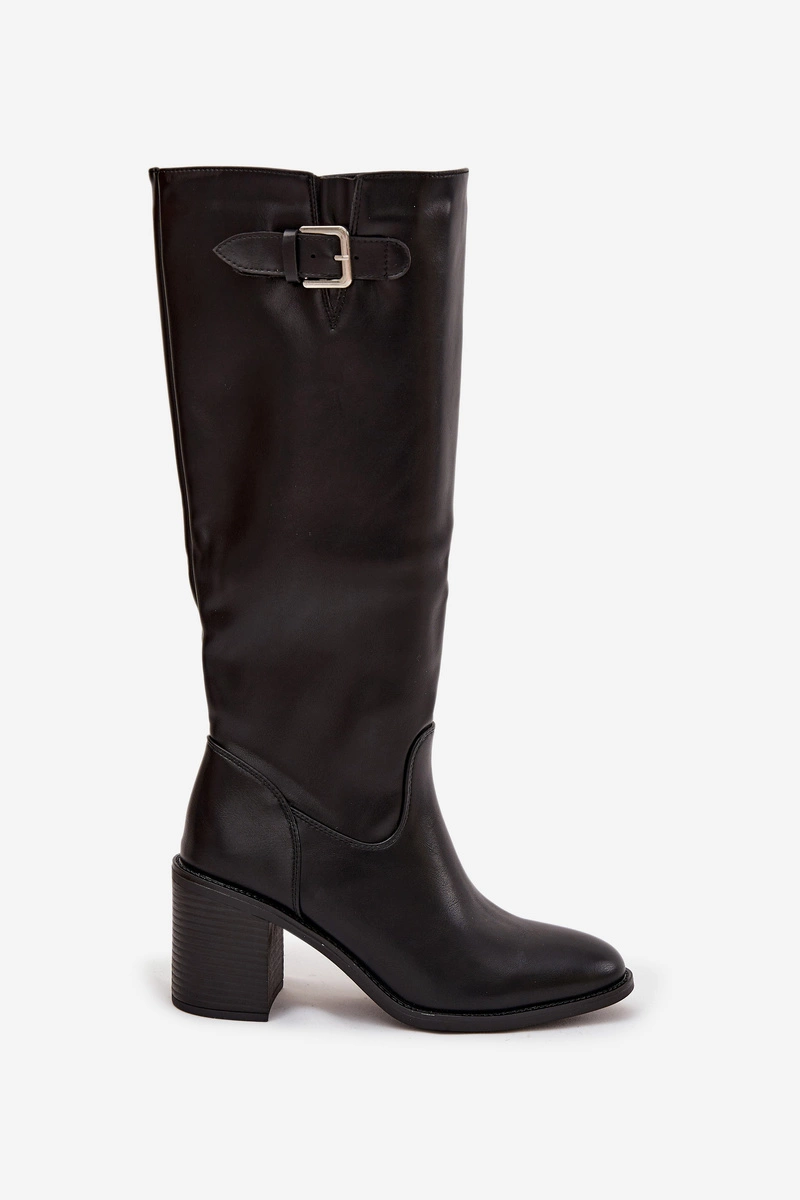 Kozaki Damskie Na Słupku Z Klamrą Czarne Brenira