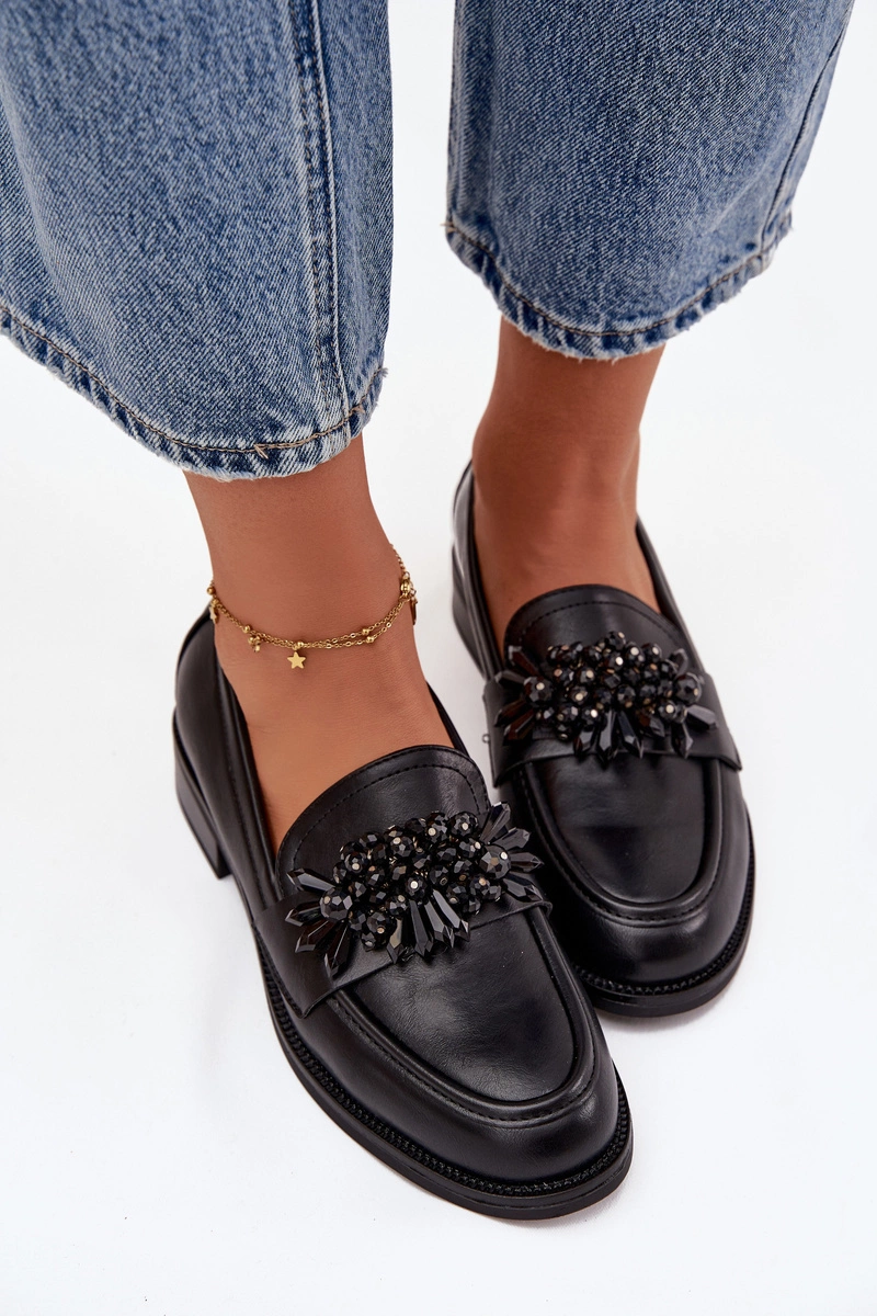 Półbuty Mokasyny Damskie Z Ozdobą Czarne Murelle