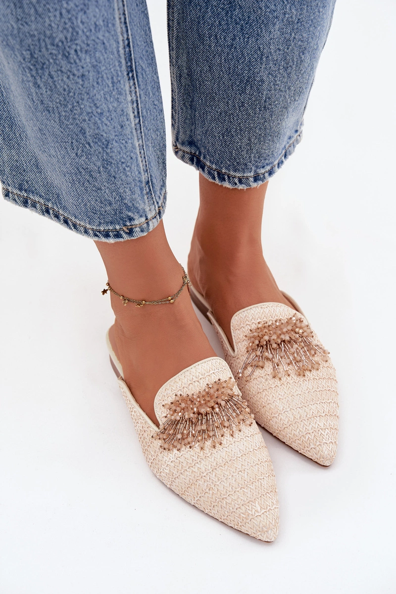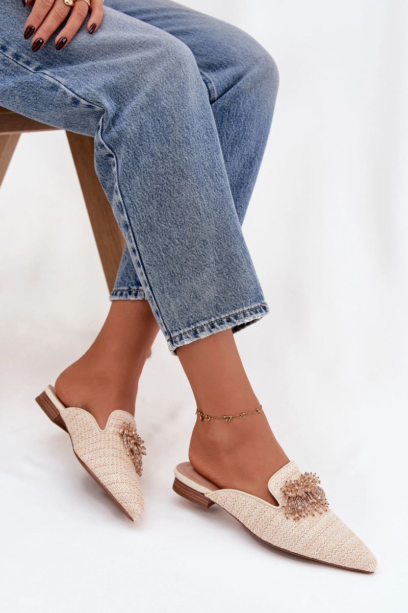 Klapki Damskie Z Ozdobą Beżowe Katrine