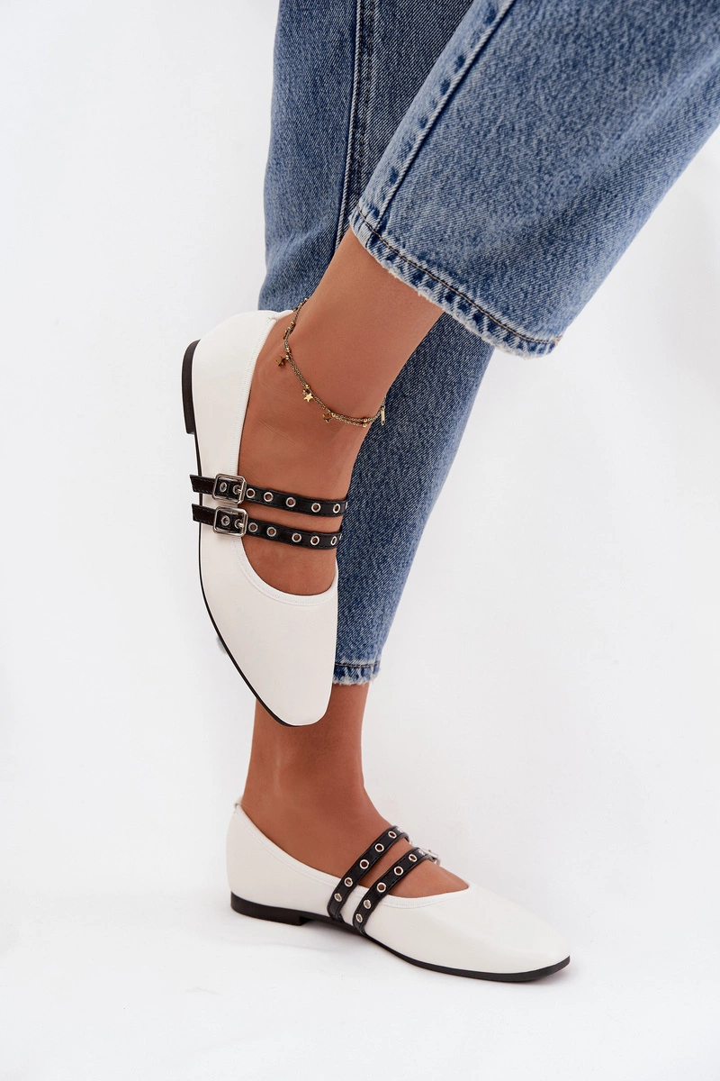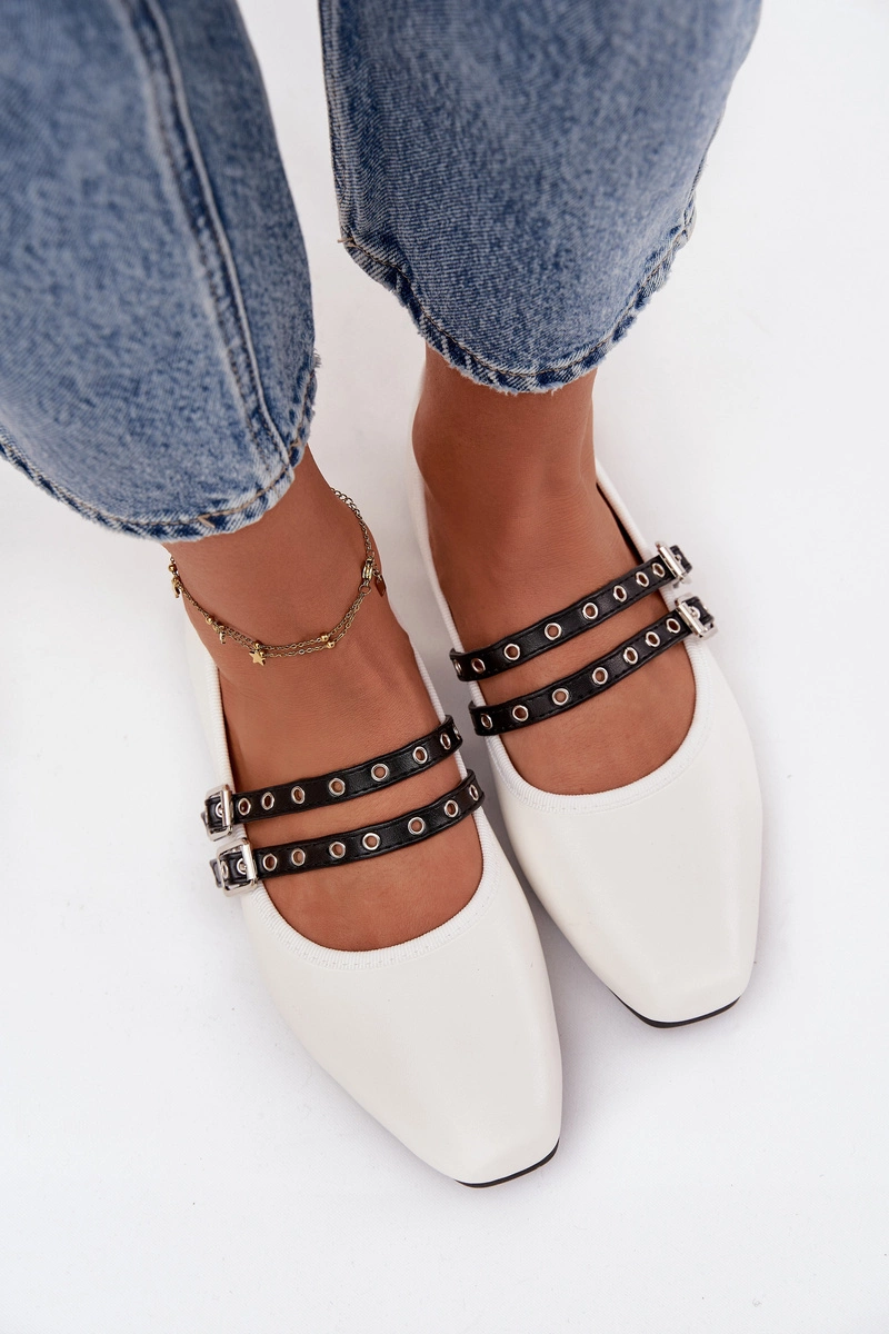 Baleriny Damskie Z Paskami Białe Deliora