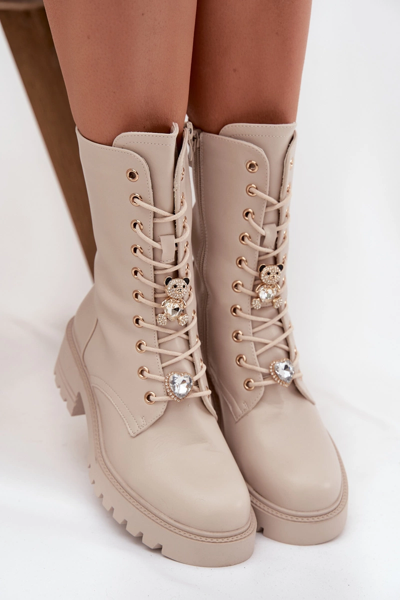 Botki Workery Damskie Z Przypinkami Miś Serce Beżowe Iravine