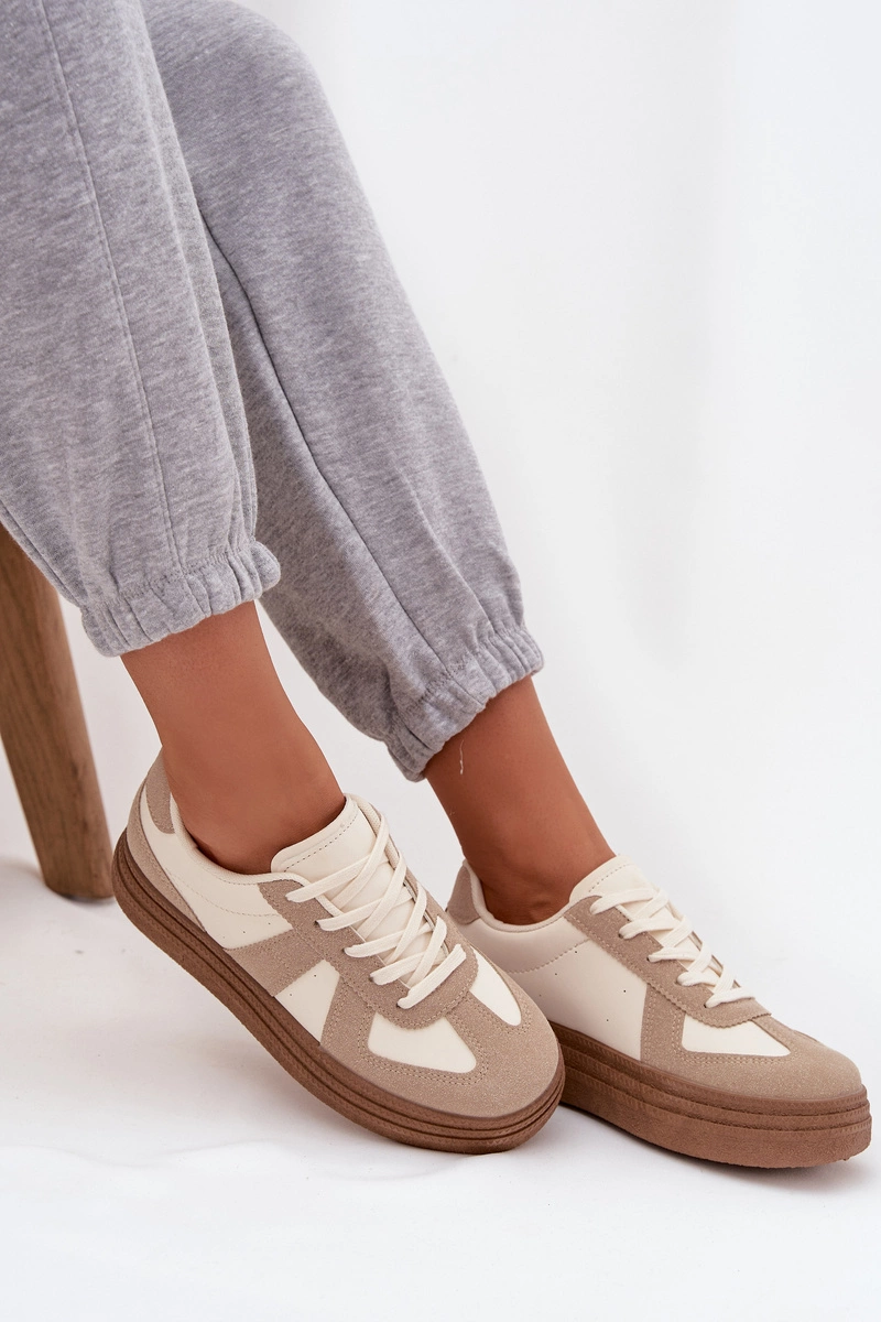Sneakersy Damskie Na Platformie Ciemnobeżowe Dovina
