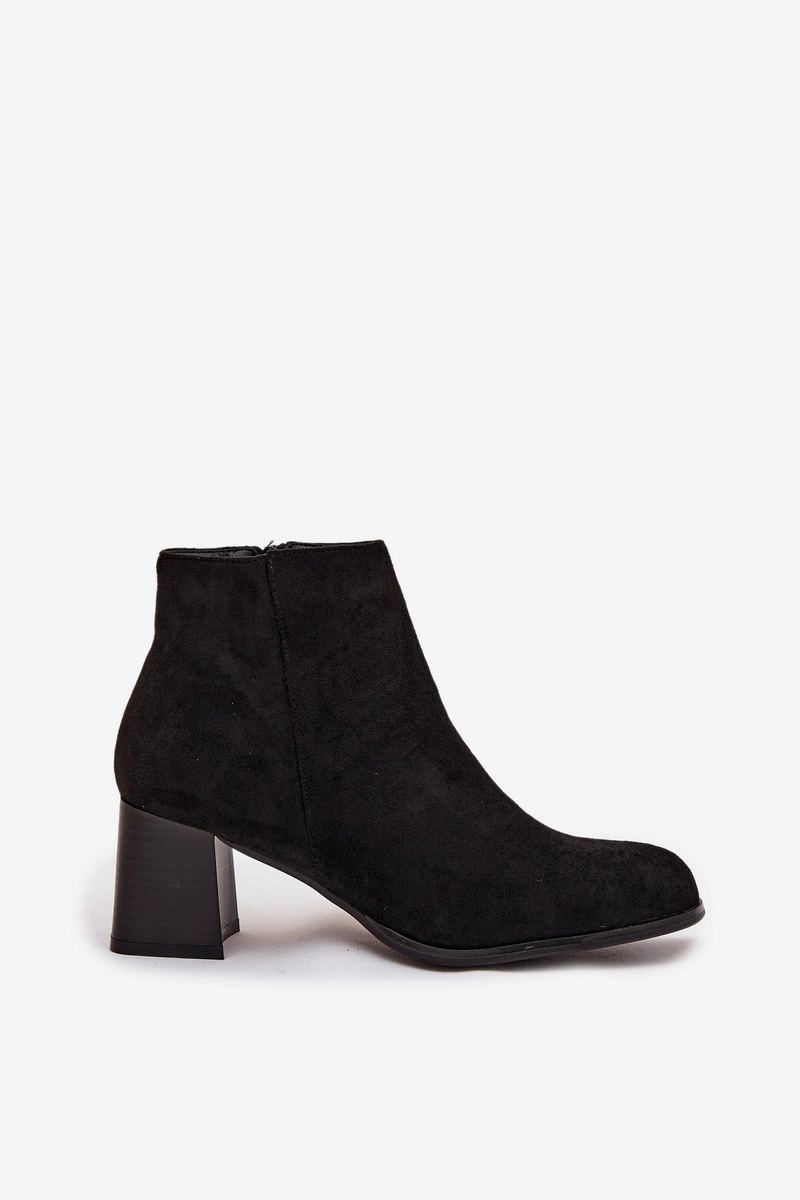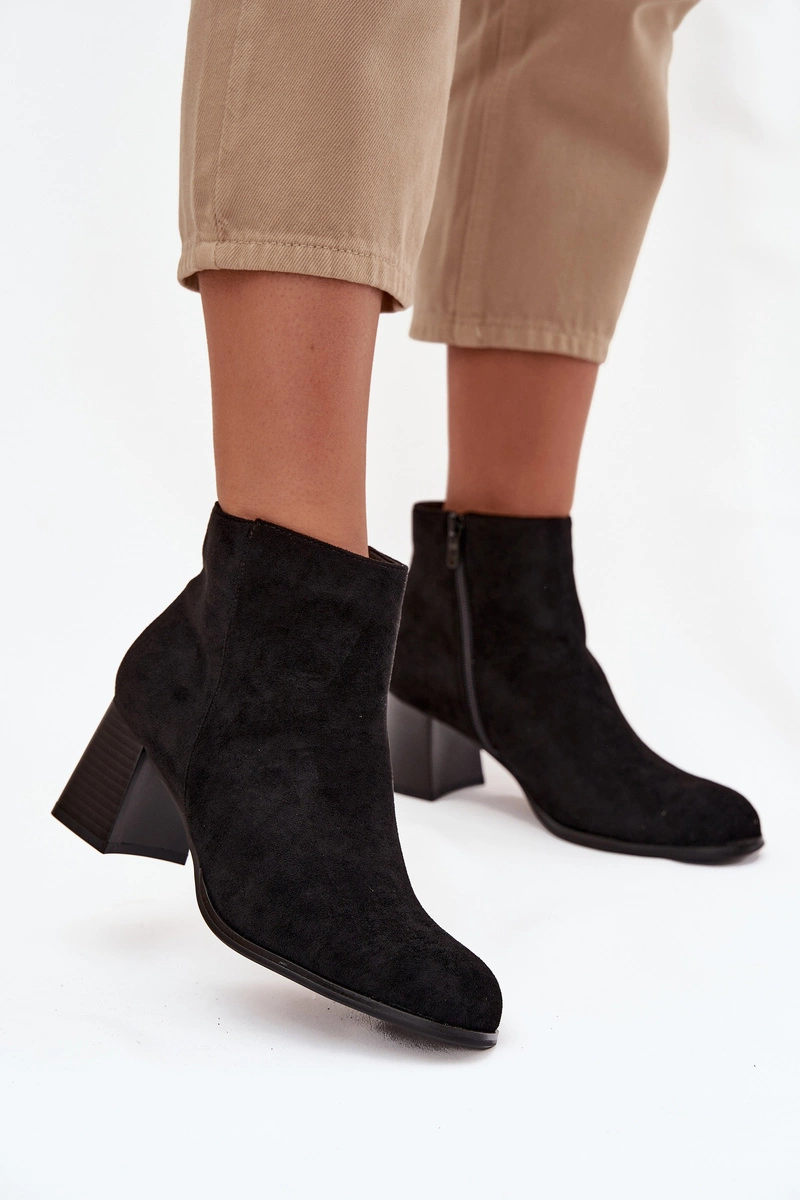 Botki Damskie Na Słupku Eko Zamszowe Czarne Marilou