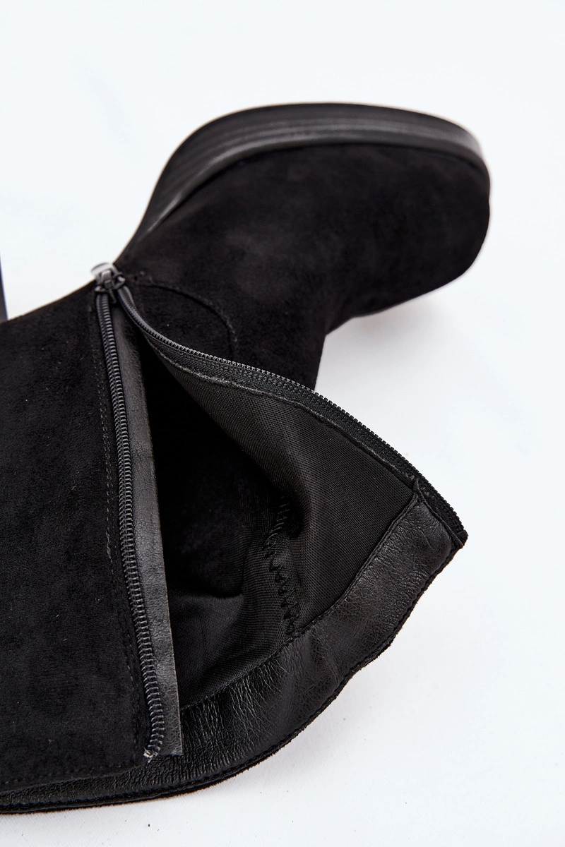 Botki damskie wykonane z eko zamszu to elegancka propozycja na sezon jesienno-zimowy. Model osadzony na stabilnym obcasie typu słupek zapewnia wygodę i pewność kroku, jednocześnie delikatnie wysmuklając sylwetkę. Buty zapinane są na zamek, co ułatwia ich zakładanie i zdejmowanie. Zaokrąglone noski nadają całości klasycznego, kobiecego charakteru. To uniwersalne botki, które świetnie sprawdzą się zarówno w codziennych, jak i bardziej eleganckich stylizacjach. Przy wyborze rozmiaru prosimy sugerować się tabelą rozmiarów.