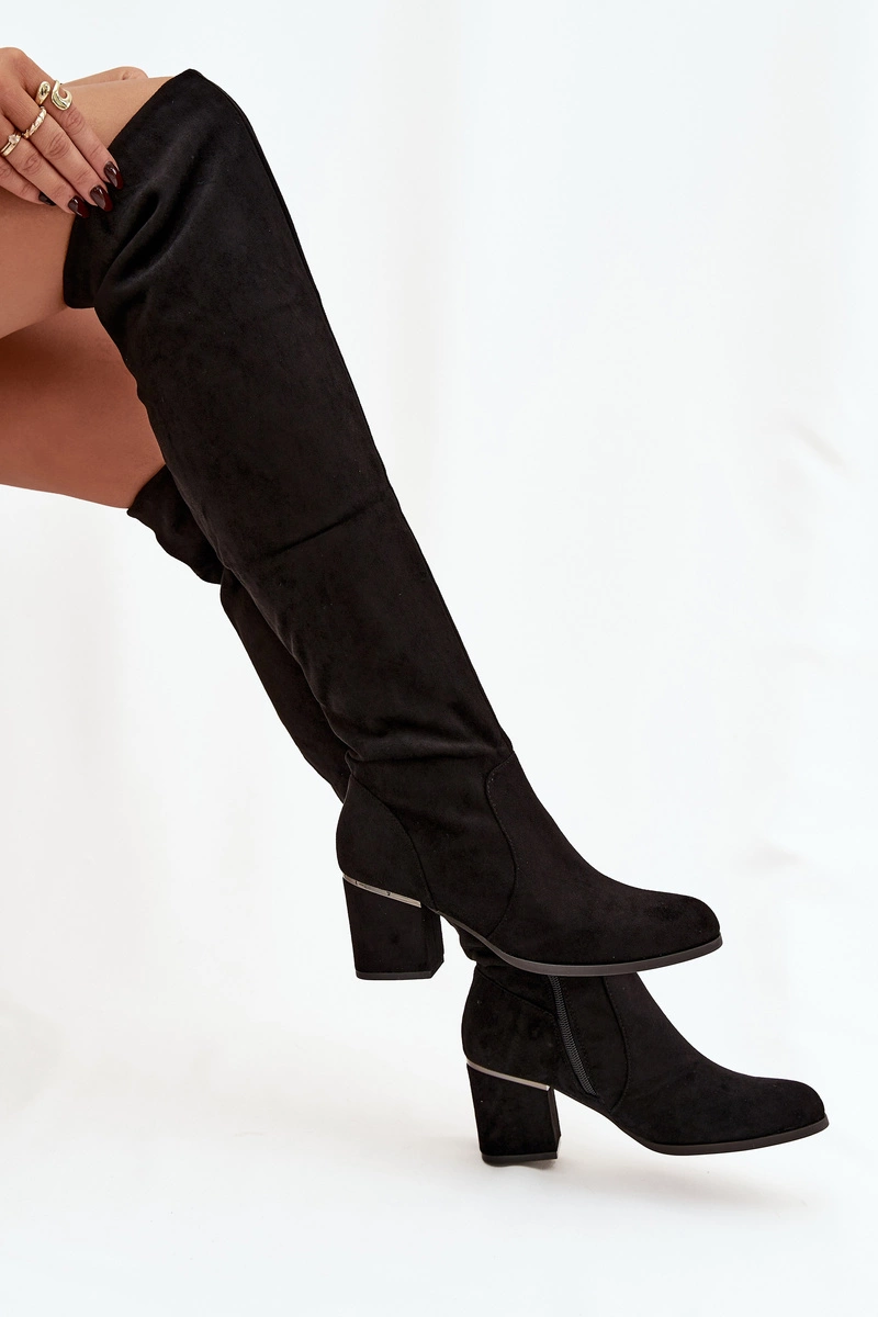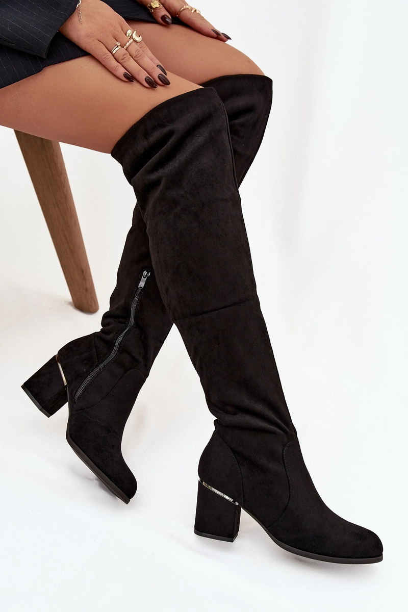 Kozaki Damskie Za Kolano Na Słupku Z Eko Zamszu Czarne Zaretta
