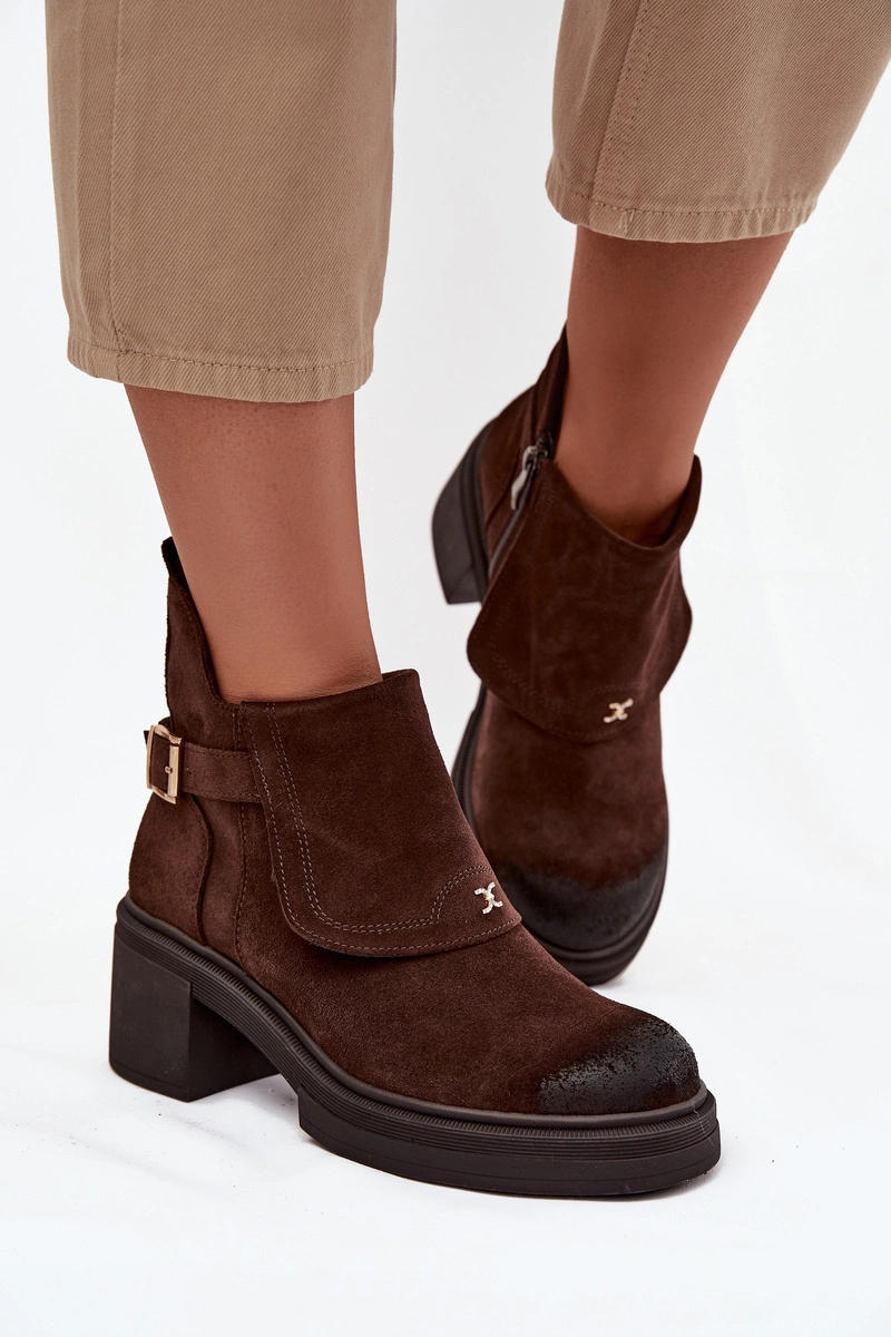 Botki Z Naturalnego Zamszu Ocieplane Zazoo 1156 Czekoladowe