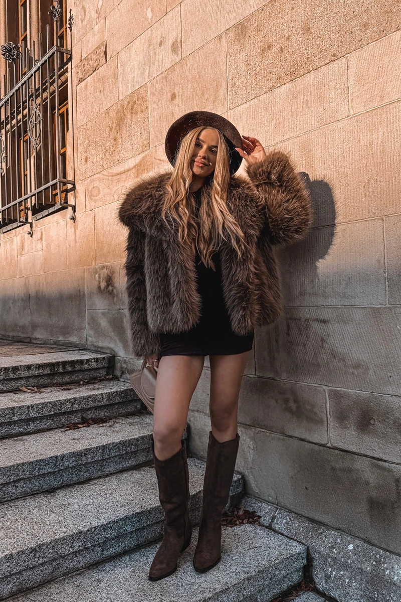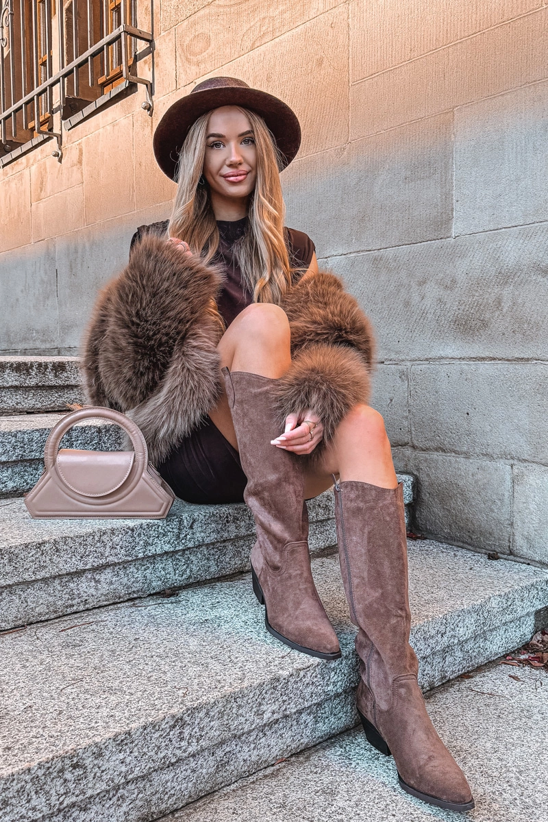 Kozaki Kowbojki Damskie Na Obcasie Z Eko Zamszu Brązowe Esmira