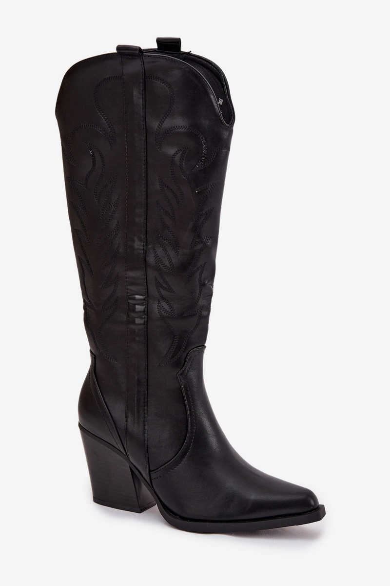 Kozaki Kowbojki Na Słupku Eko Skórzane Ocieplane Czarne Zareen