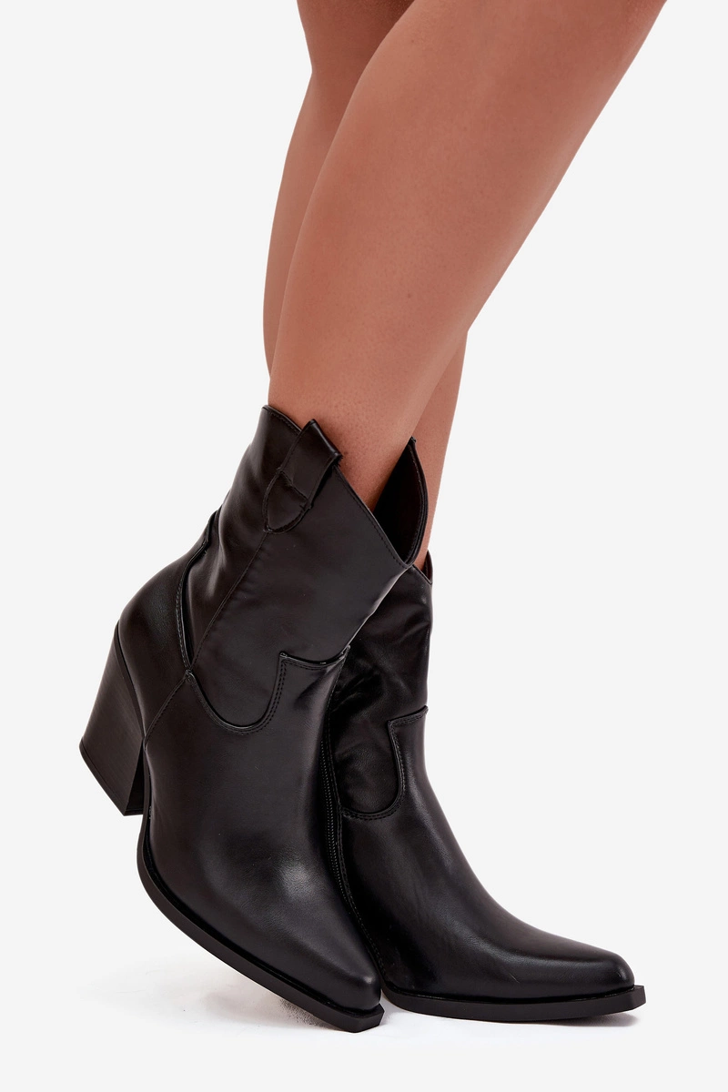 Botki Kowbojki Damskie Eko Skórzane Na Słupku Czarne Morelia