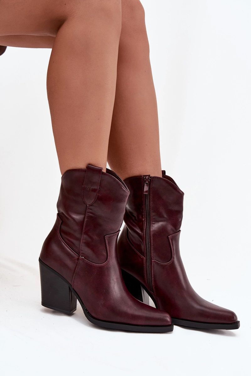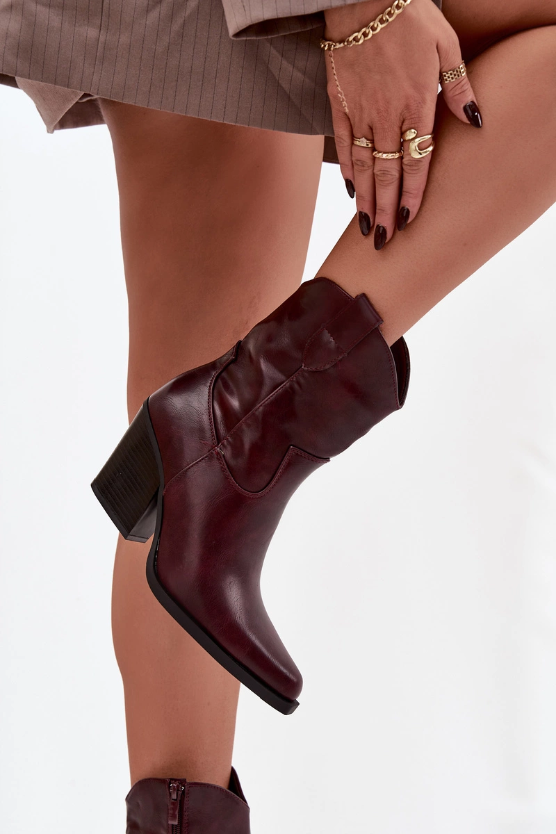 Botki Kowbojki Damskie Eko Skórzane Na Słupku Bordowe Morelia