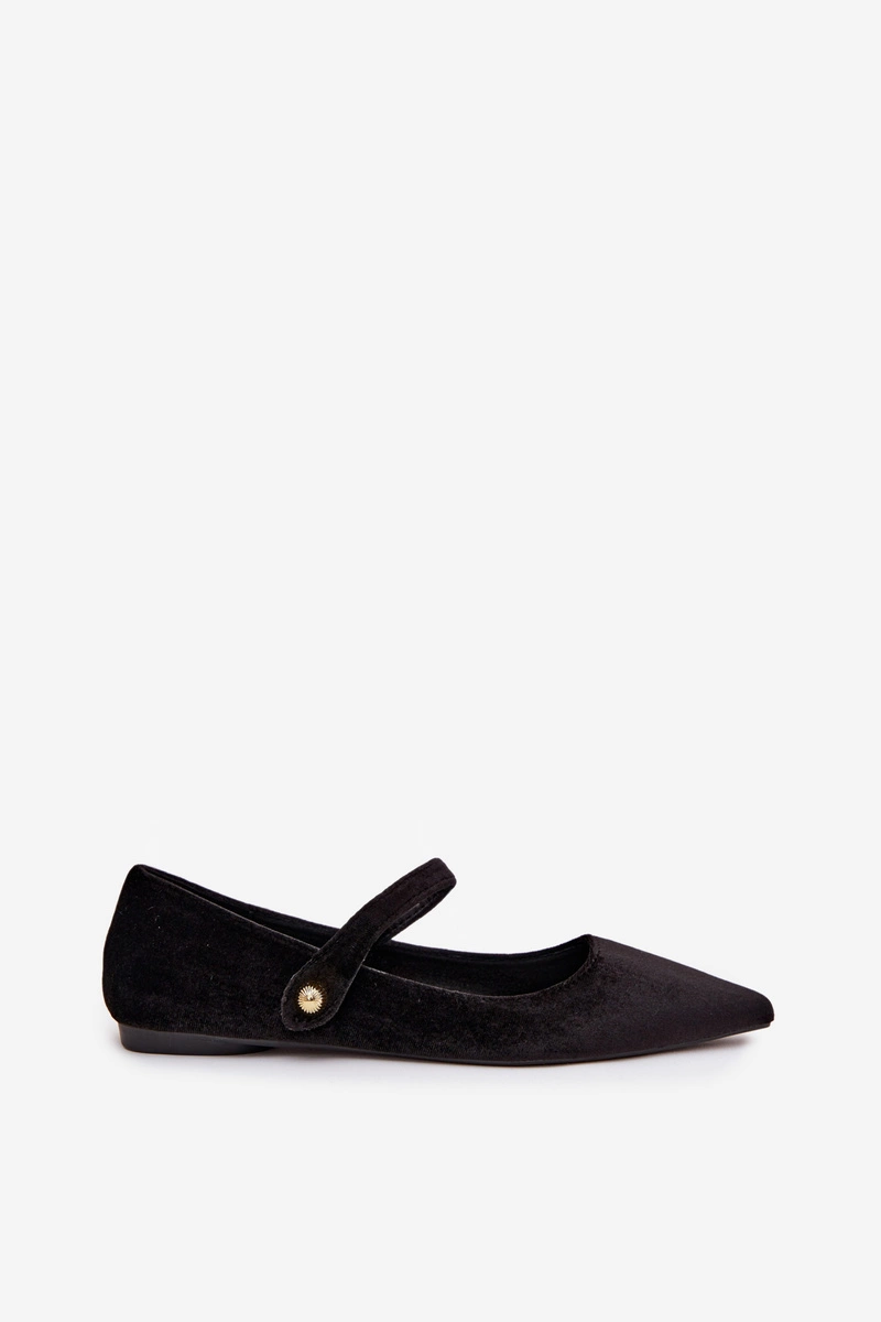 Aksamitne Baleriny Z Paskiem I Złotym Detalem Czarne Gisanne