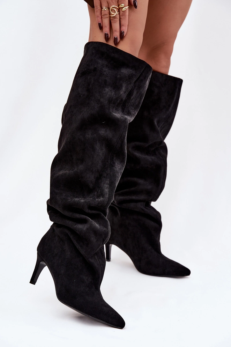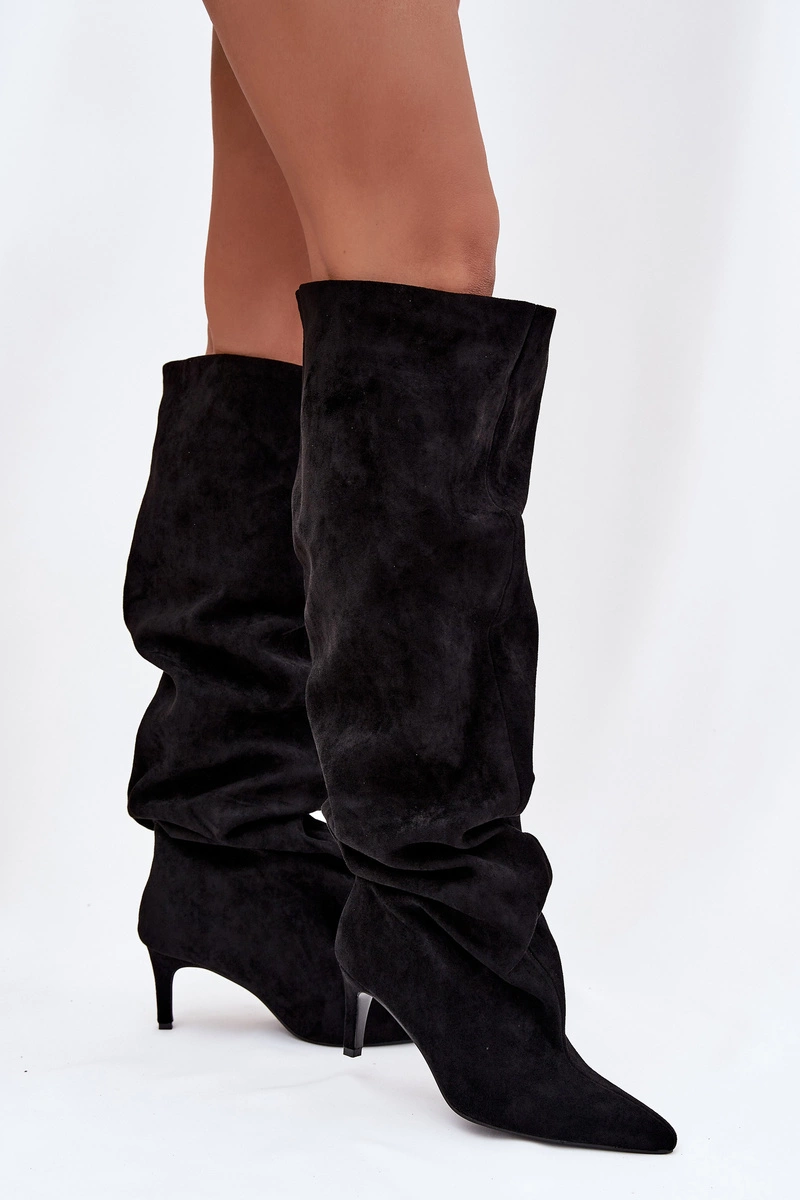 Kozaki Damskie Na Szpilce Wsuwane Czarne Mavilla