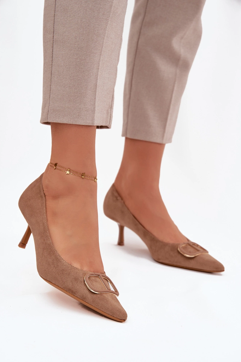 Szpilki Damskie Z Ozdobnym Detalem Ciemnobeżowe Amelora