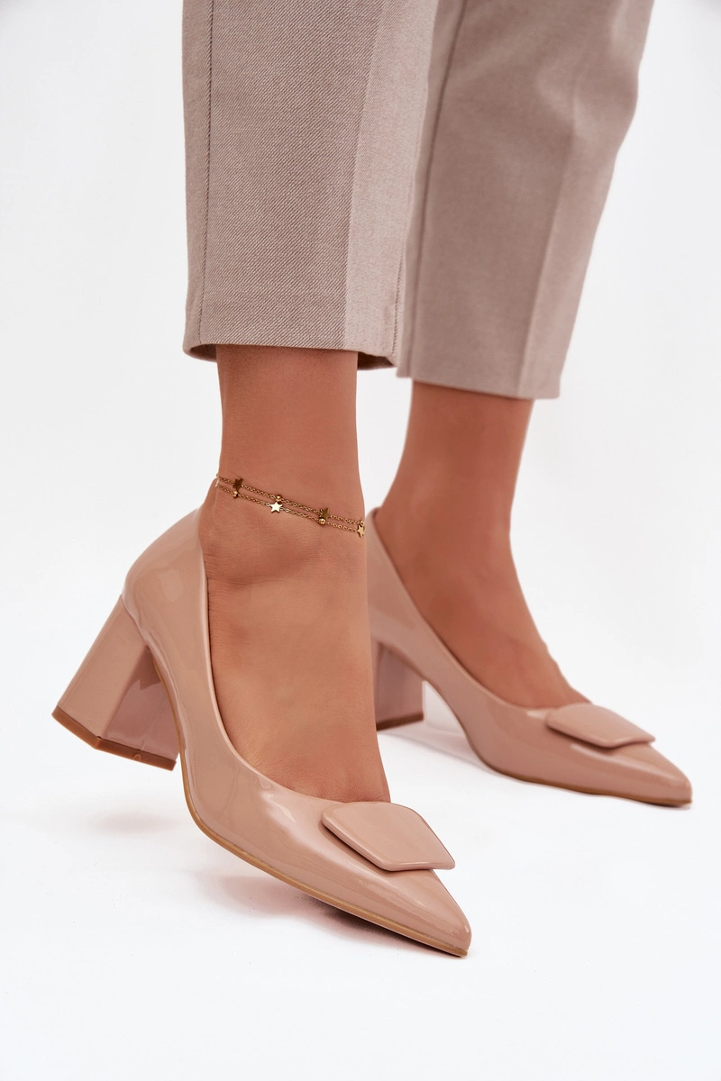 Lakierowane Czółenka Na Słupku Z Ozdobą Nude Isoline