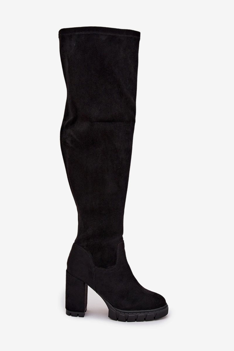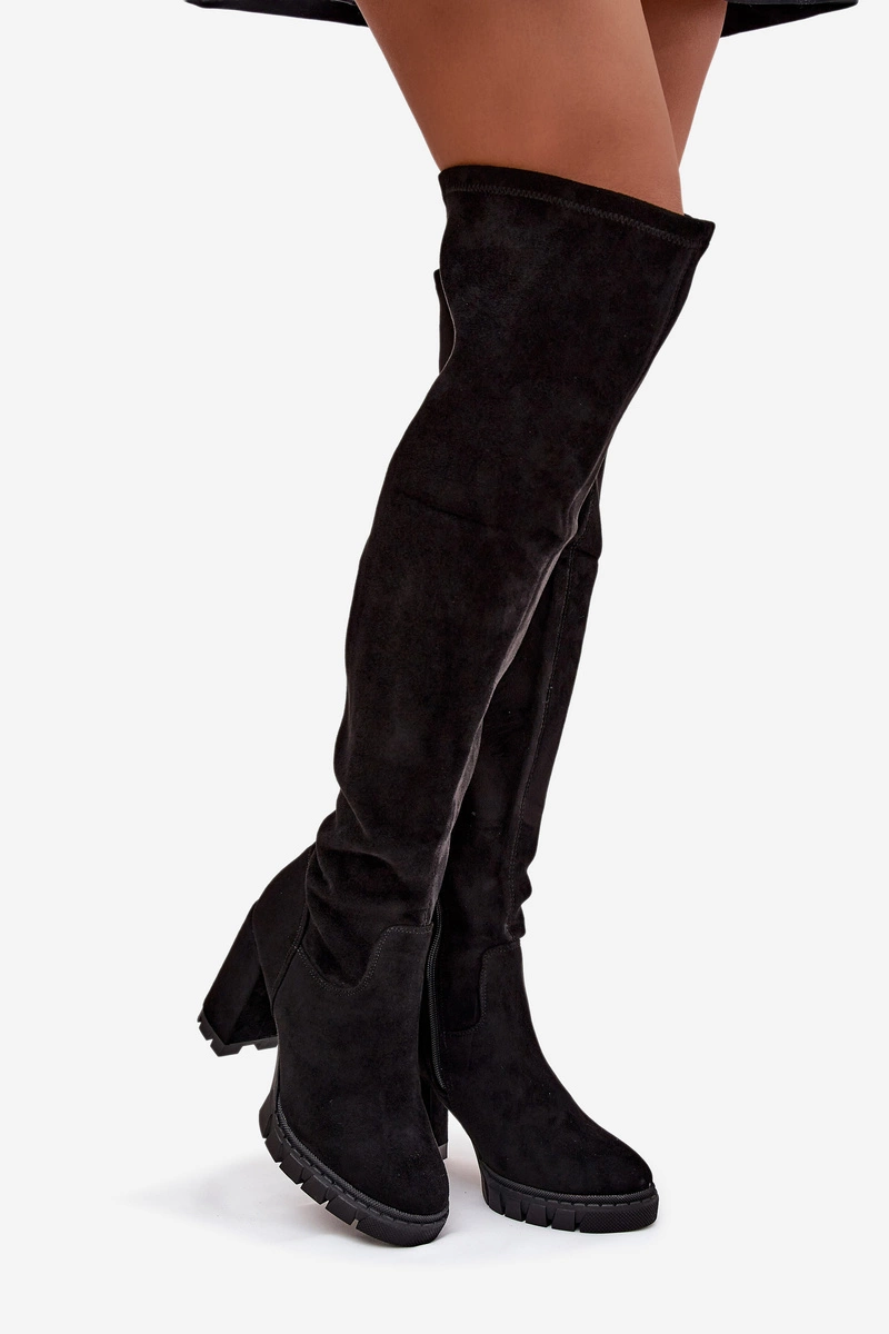 Kozaki Damskie Za Kolano Na Słupku Eko Zamszowe Czarne Tahlina