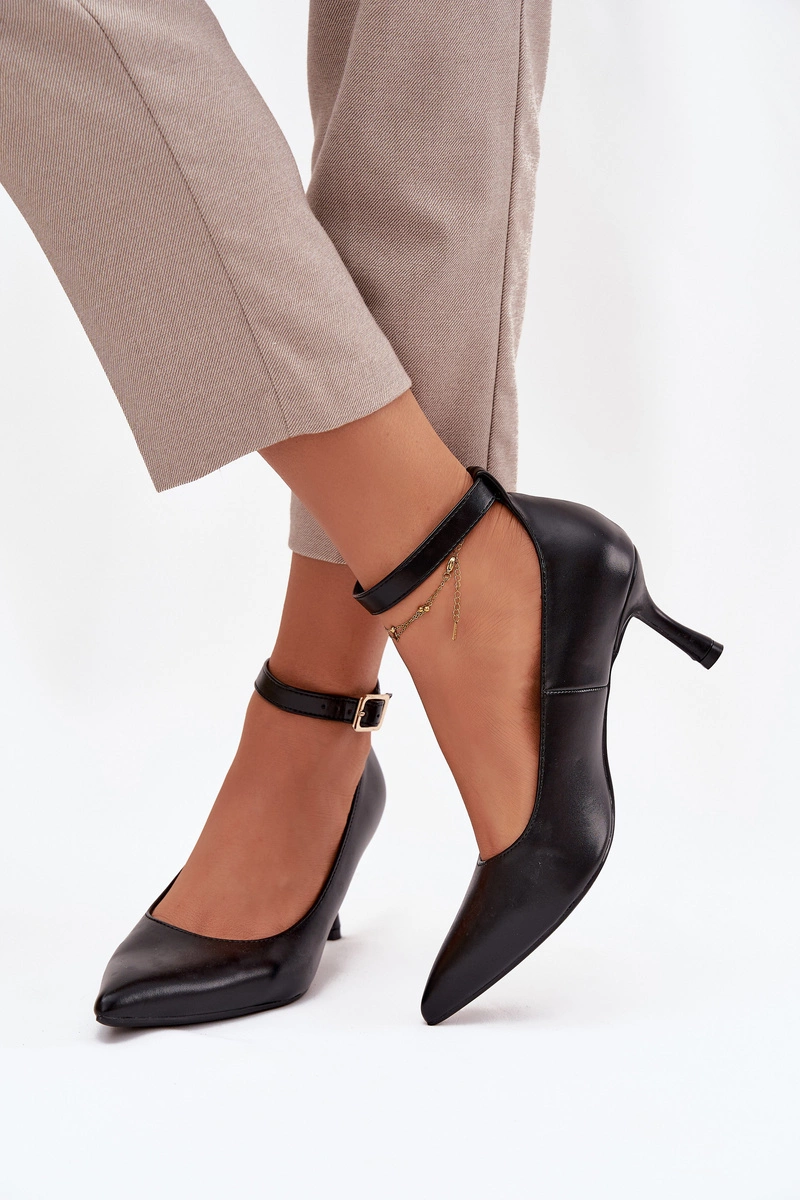 Szpilki – czółenka damskie wykonane z wysokiej jakości eko skóry to połączenie klasyki i kobiecego wdzięku. Model zachwyca eleganckim fasonem ze szpiczastym noskiem, który optycznie wysmukla nogi i dodaje sylwetce lekkości. Buty posiadają regulowany pasek ze sprzączką, który nie tylko stanowi ozdobny akcent, ale także zapewnia idealne dopasowanie do stopy i stabilność podczas chodzenia. Smukła szpilka pięknie podkreśla kobiecą sylwetkę, dodając jej elegancji i pewności siebie. Te czółenka doskonale sprawdzą się zarówno w eleganckich stylizacjach biurowych, jak i na specjalne okazje – do sukienek, spódnic czy klasycznych garniturów. Przy wyborze rozmiaru prosimy sugerować się tabelą rozmiarów.