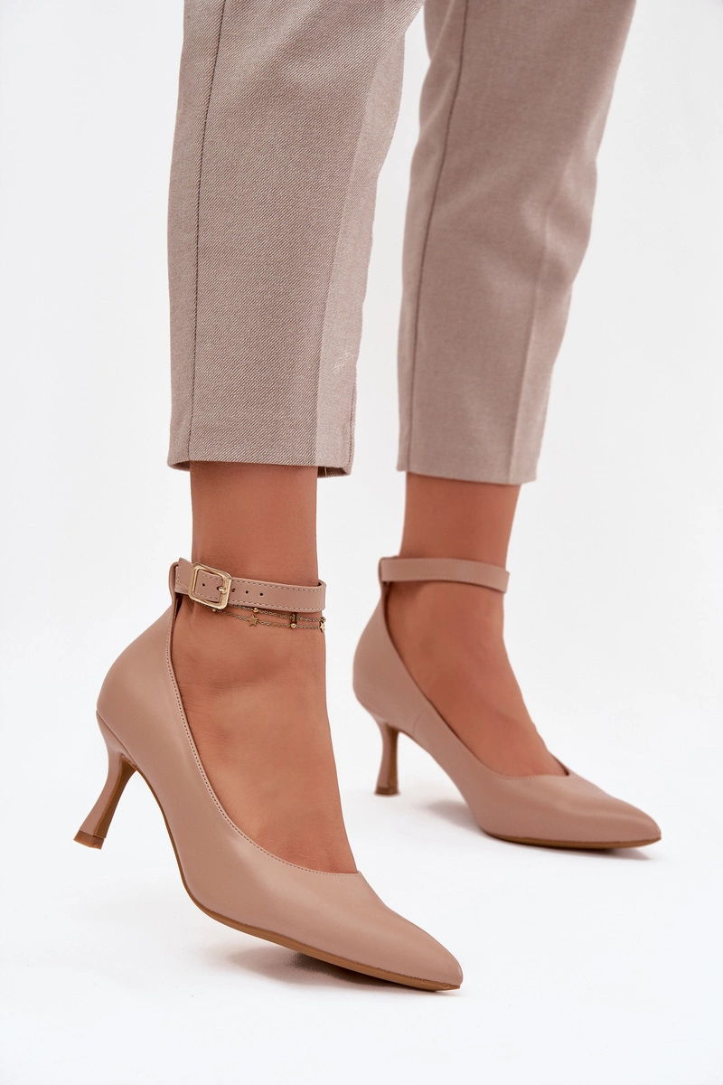 Szpilki – czółenka damskie wykonane z wysokiej jakości eko skóry to połączenie klasyki i kobiecego wdzięku. Model zachwyca eleganckim fasonem ze szpiczastym noskiem, który optycznie wysmukla nogi i dodaje sylwetce lekkości. Buty posiadają regulowany pasek ze sprzączką, który nie tylko stanowi ozdobny akcent, ale także zapewnia idealne dopasowanie do stopy i stabilność podczas chodzenia. Smukła szpilka pięknie podkreśla kobiecą sylwetkę, dodając jej elegancji i pewności siebie. Te czółenka doskonale sprawdzą się zarówno w eleganckich stylizacjach biurowych, jak i na specjalne okazje – do sukienek, spódnic czy klasycznych garniturów. Przy wyborze rozmiaru prosimy sugerować się tabelą rozmiarów.