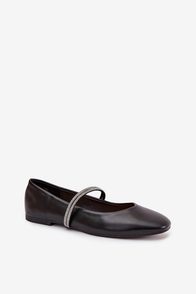 Baleriny Damskie Z Błyszczącymi Paskami Czarne Ilirene