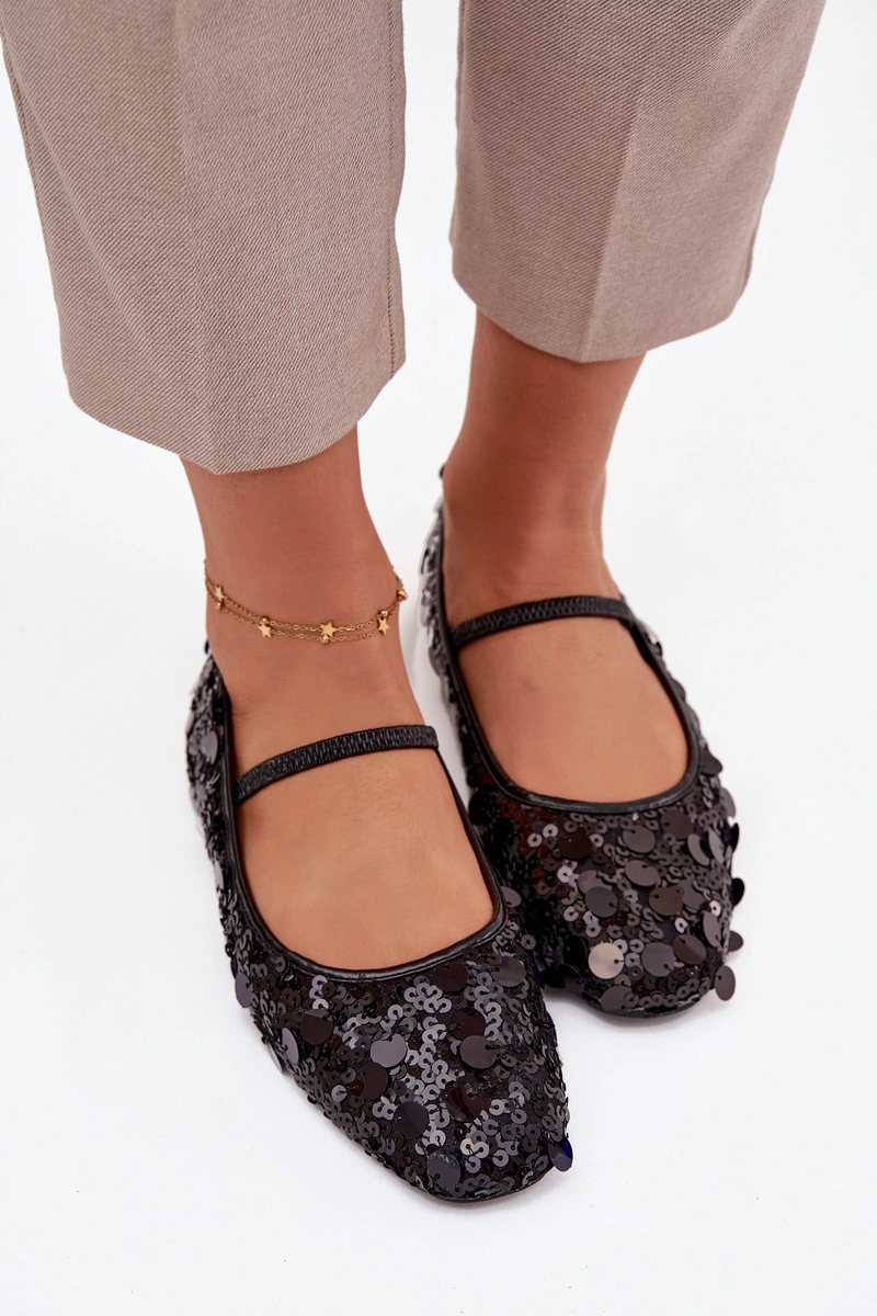 Baleriny Ozdobione Cekinami Czarne Terlina