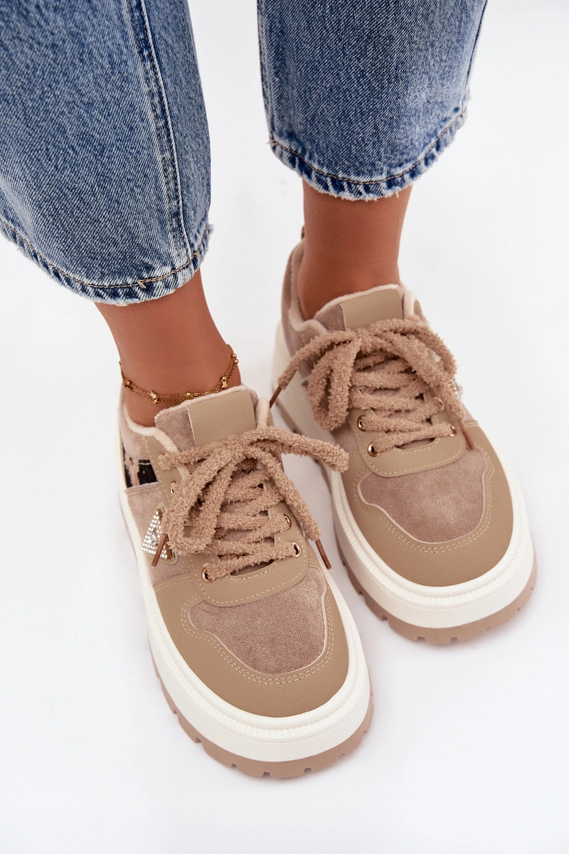 Ocieplane Sneakersy Damskie Na Platformie Beżowe Florinda