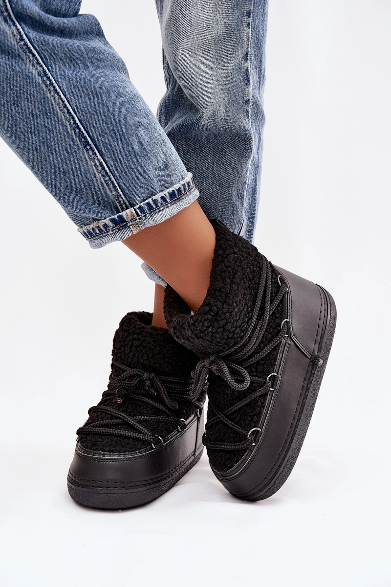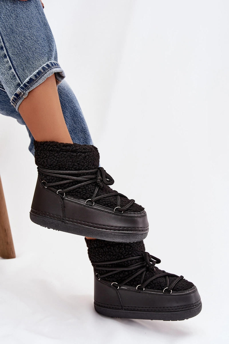 Śniegowce Damskie Z Futerkiem Typu Baranek Wiązane Czarne Belira