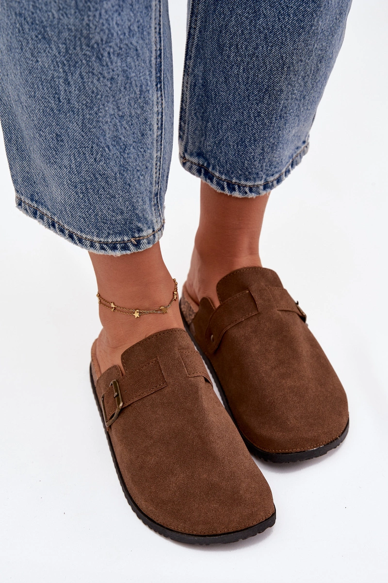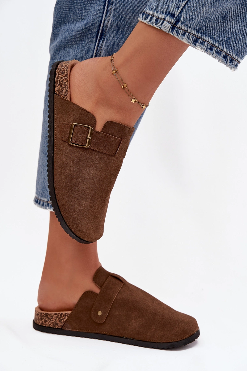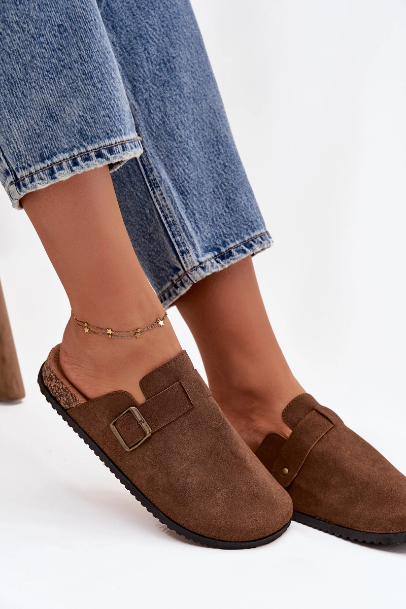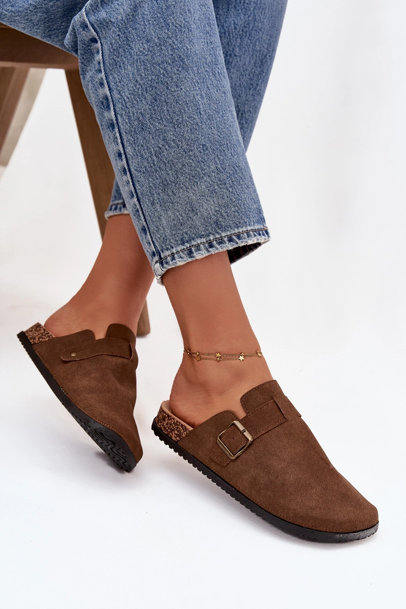 Klapki Chodaki Damskie i Na Platformie Z Klamrą Brązowe Selio