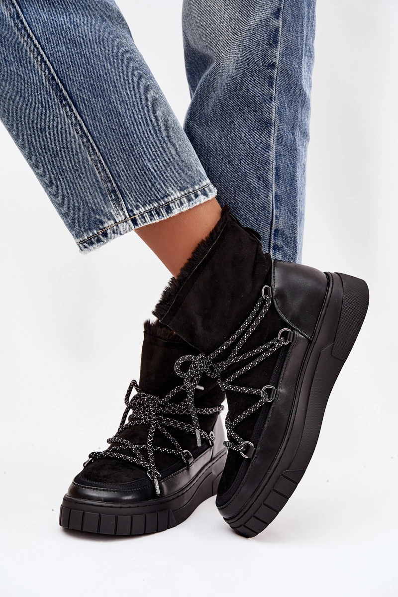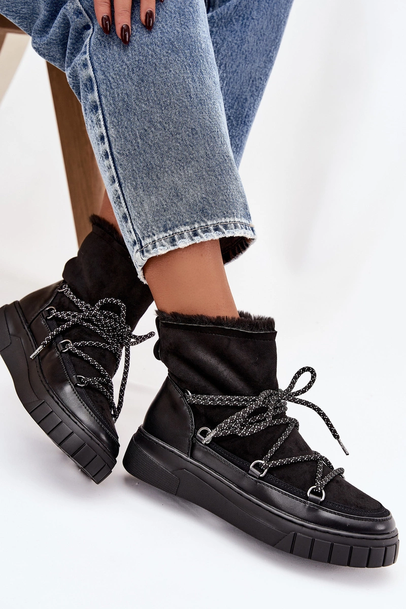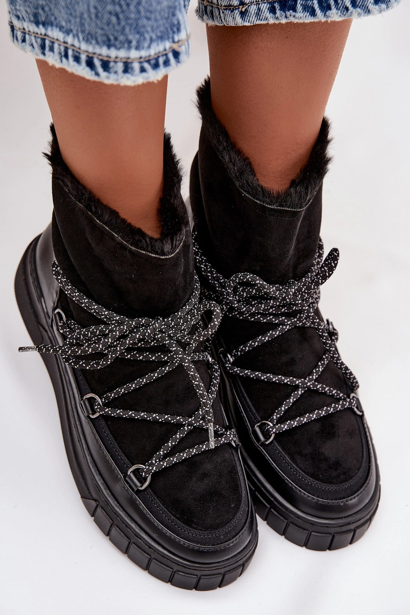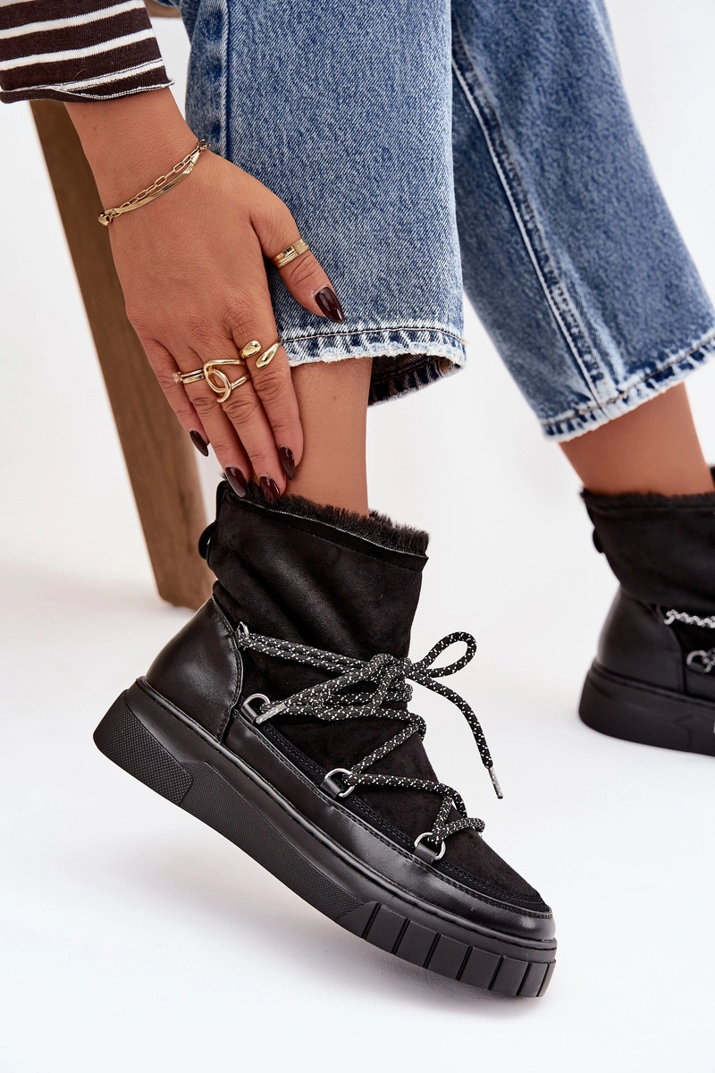 Śniegowce Damskie Z Wiązaniem Czarne Isalisse