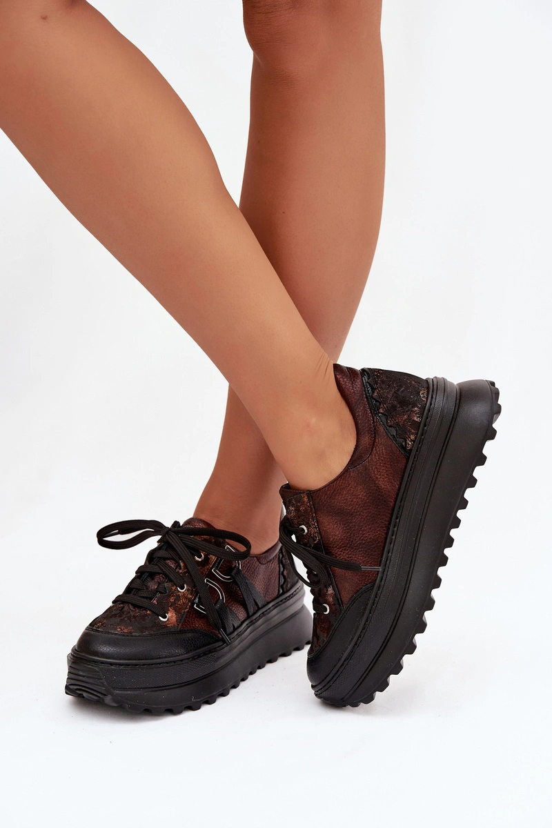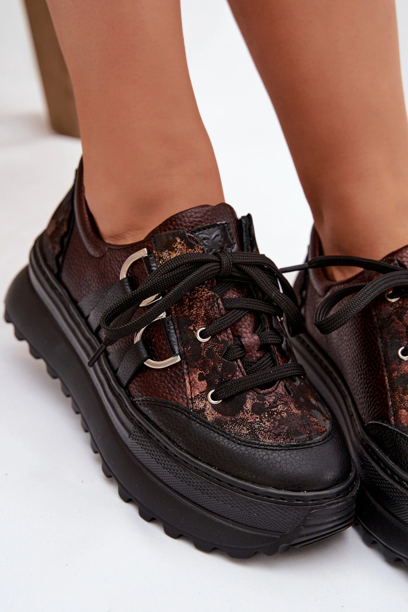 Skórzane Sneakersy Damskie Na Platformie Maciejka 06562-25 Czekoladowe