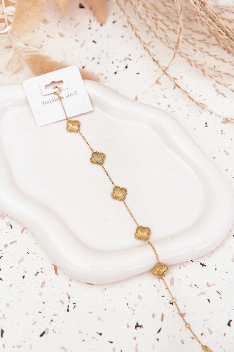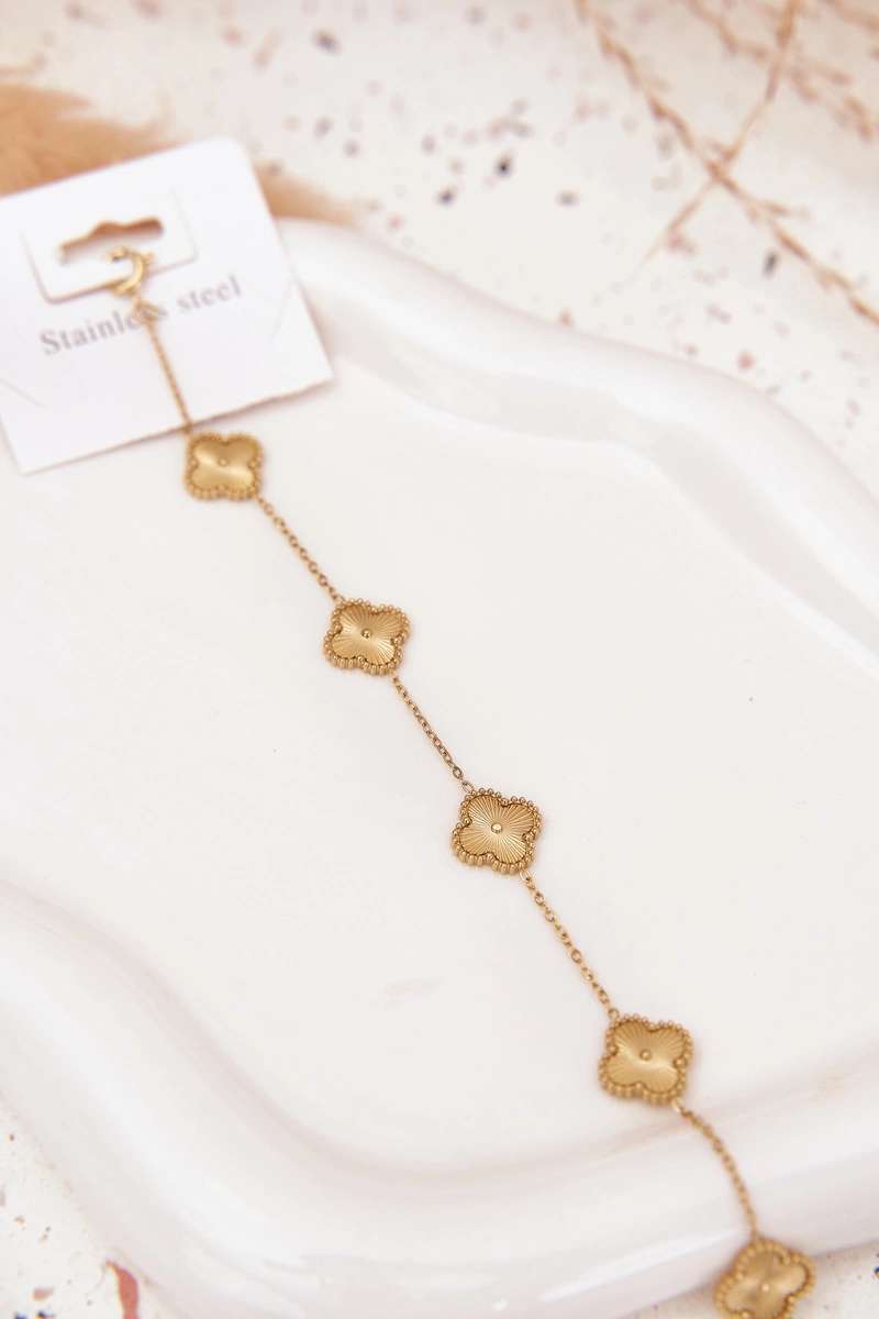 Bransoletka Ze Stali Nierdzewnej Z Kwiatuszkami Złota