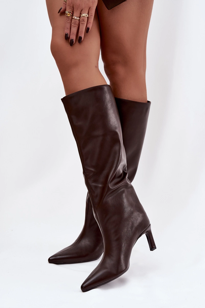 Kozaki Damskie Wsuwane Na Szpilce Z Przeszyciem Czekoladowe Olyvia
