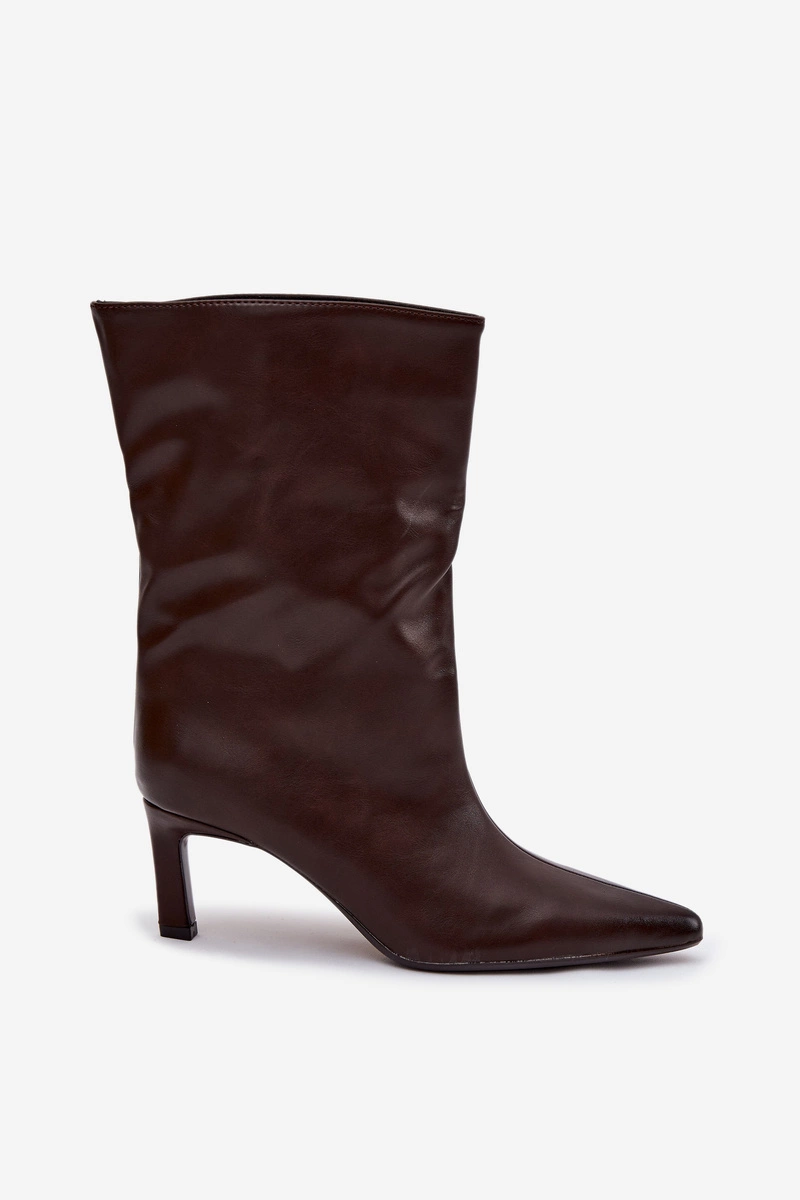 Wsuwane Botki Damskie Na Szpilce Z Eko Skóry Czekoladowe Norell