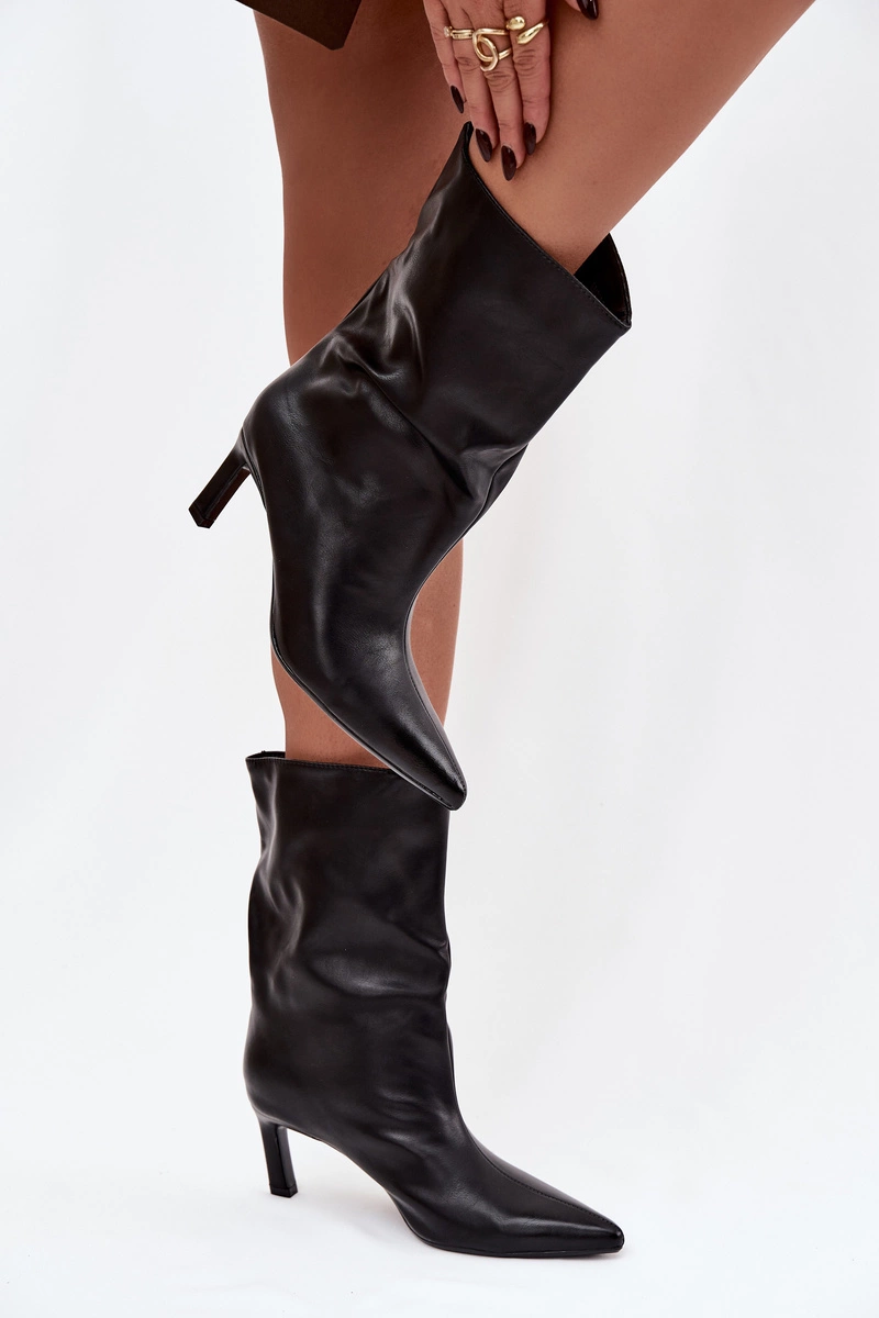 Wsuwane Botki Damskie Na Szpilce Z Eko Skóry Czarne Norell