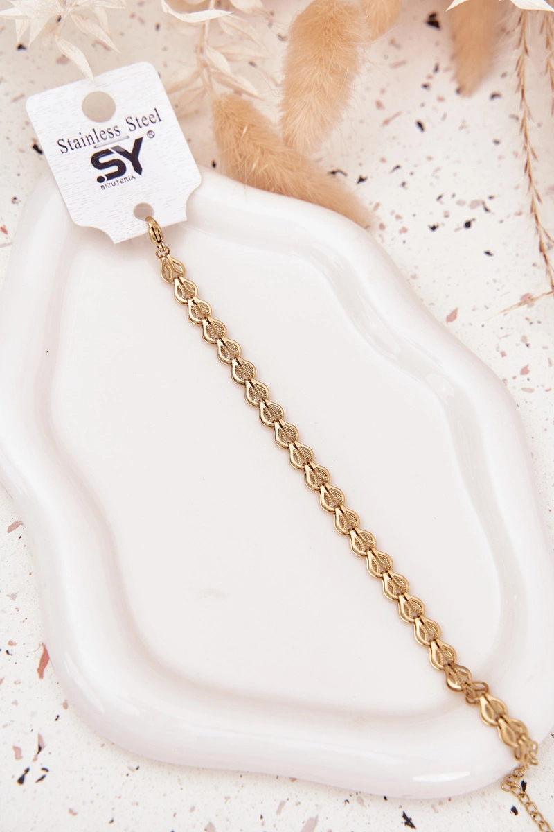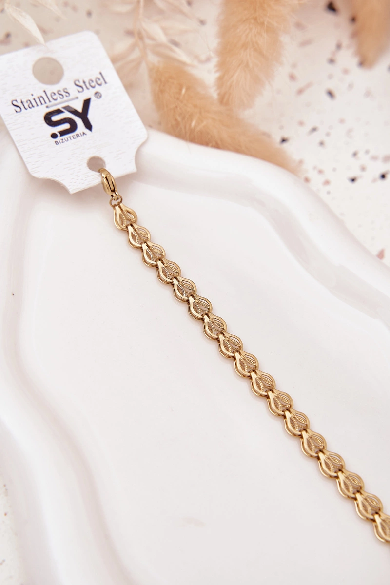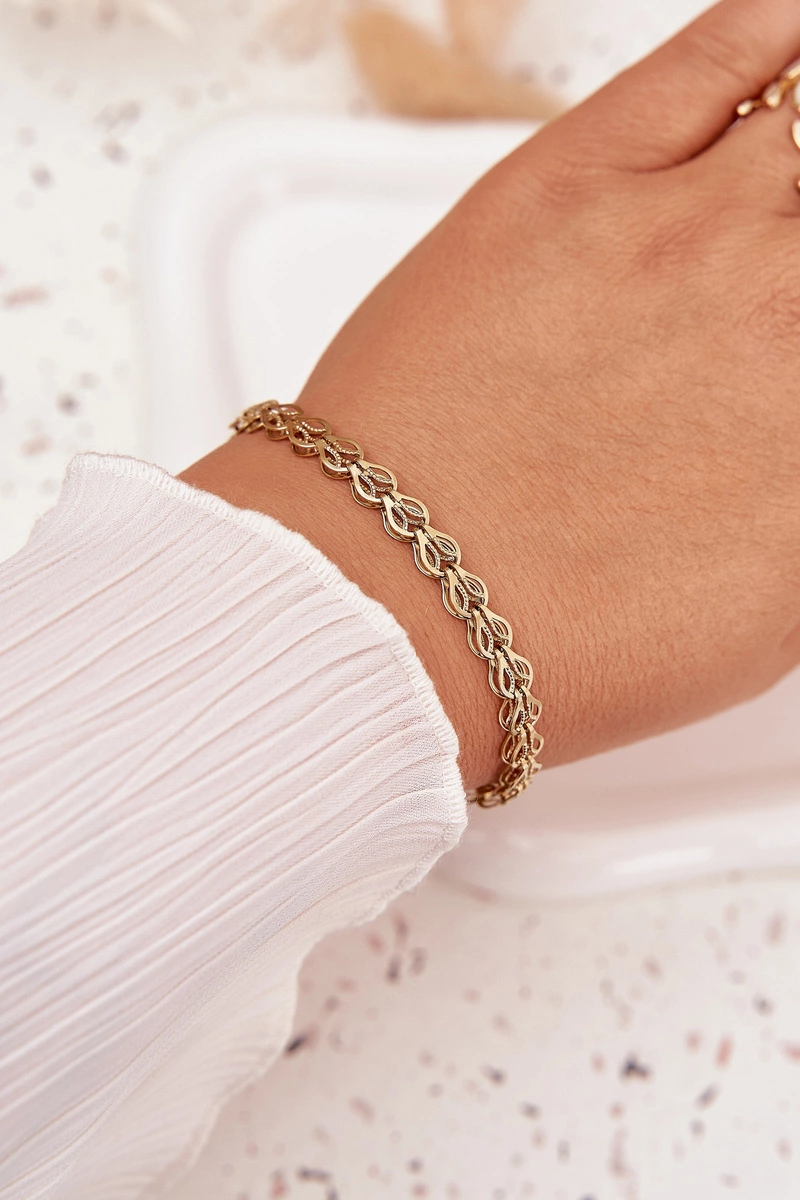 Damska bransoletka wykonana ze stali chirurgicznej w odcieniu złota to elegancki dodatek, który doda blasku każdej stylizacji. Dekoracyjny splot nadaje jej oryginalnego charakteru, a regulowane zapięcie pozwala idealnie dopasować ją do nadgarstka. Stylowa i uniwersalna – doskonale sprawdzi się zarówno w codziennych, jak i bardziej eleganckich zestawach.