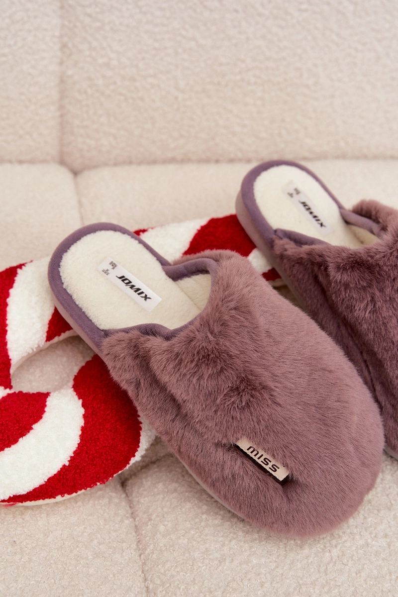 Futrzane Kapcie Damskie Ciemnofioletowe Belinna