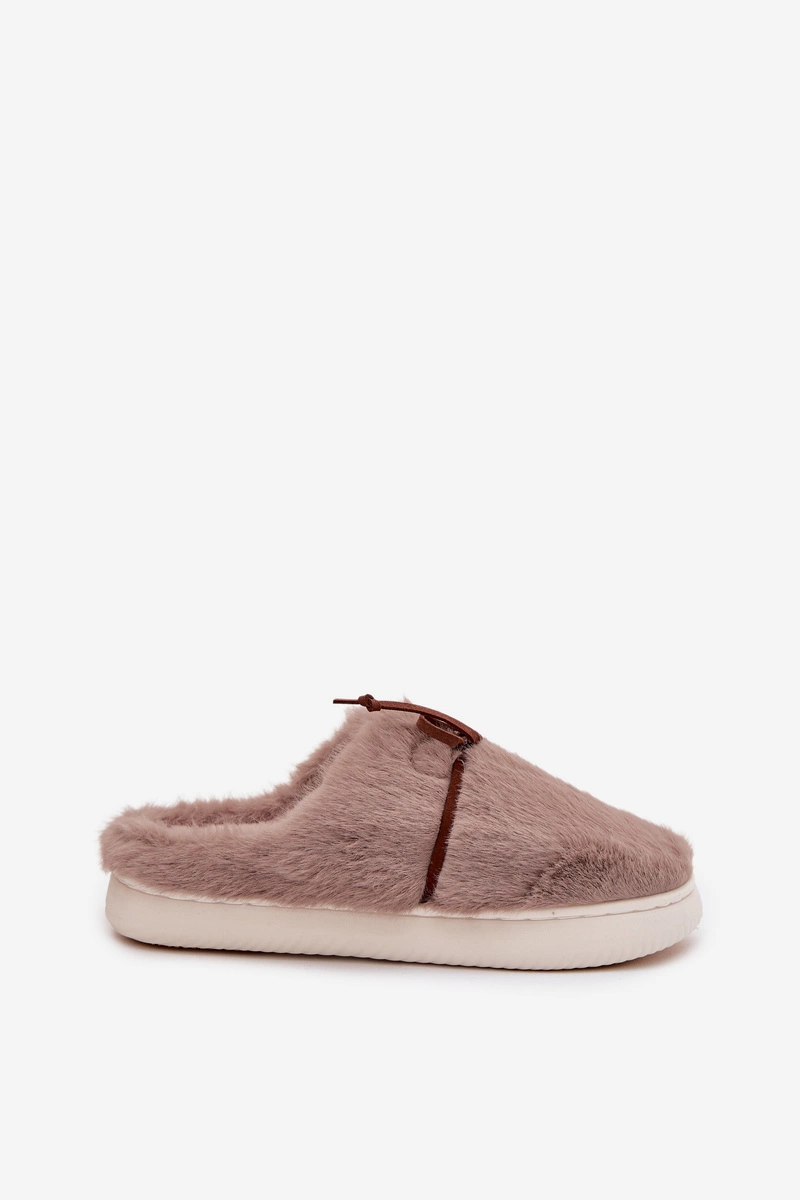 Futrzane Kapcie Z Kokardką Khaki Minella
