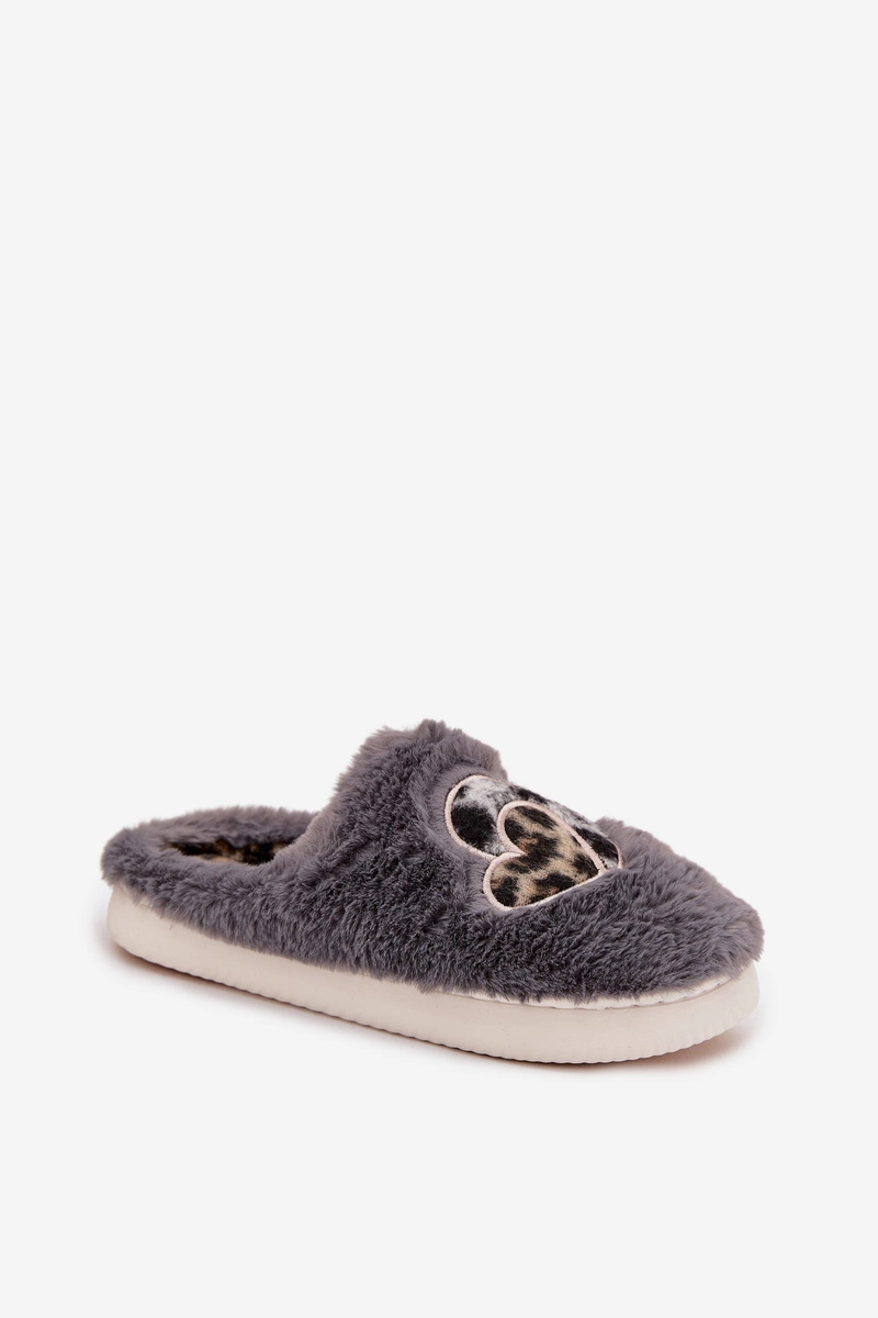 Futrzane Kapcie Z Sercami Szare Amandra