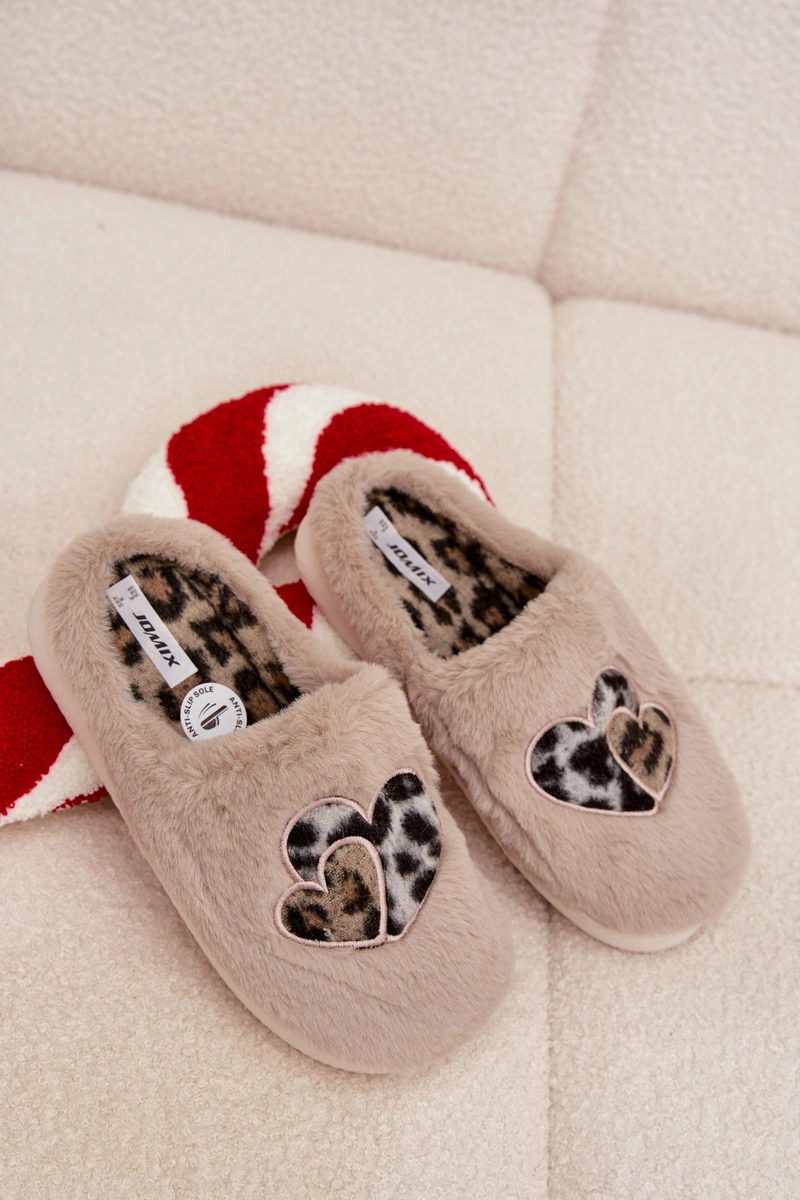 Futrzane Kapcie Z Sercami Beżowe Amandra