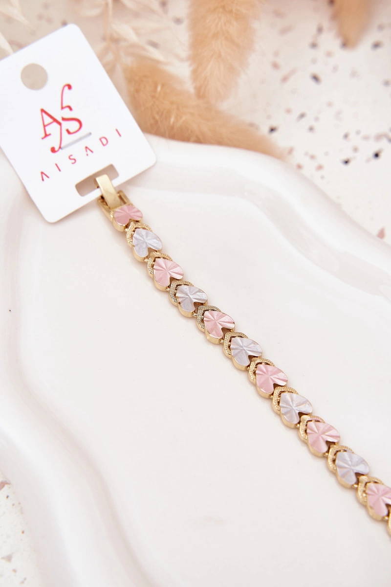Bransoletka Damska Z Kolorowymi Serduszkami Stal Chirurgiczna Złota