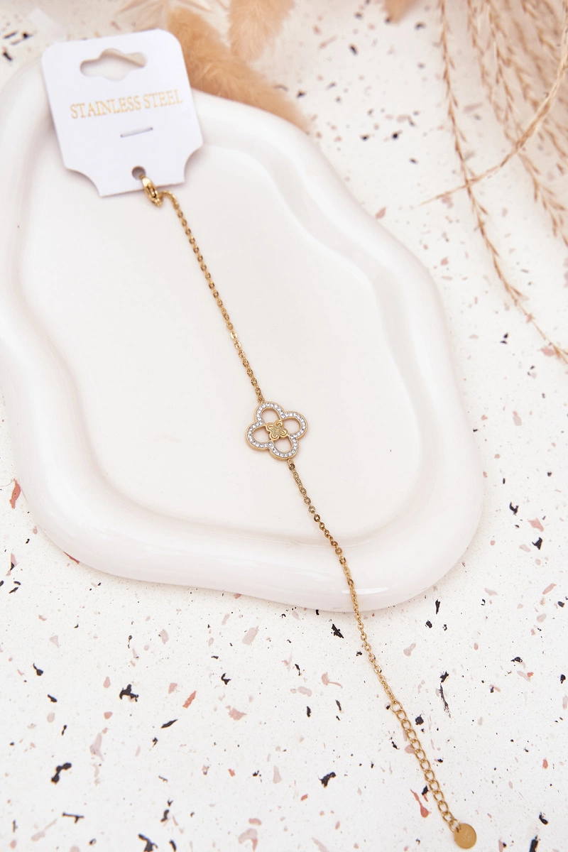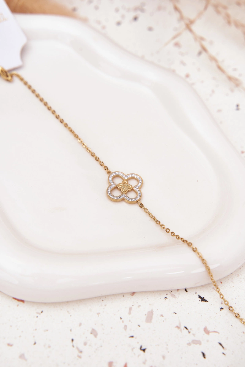 Bransoletka damska wykonana ze stali chirurgicznej w złotym kolorze to dodatek, który doda blasku każdej stylizacji. Ozdobiona połyskującymi cyrkoniami, prezentuje się subtelnie i bardzo kobieco. Regulowane zapięcie pozwala idealnie dopasować ją do nadgarstka, zapewniając wygodę noszenia. Stylowa, trwała i uniwersalna — doskonała zarówno na co dzień, jak i na wyjątkowe okazje.
