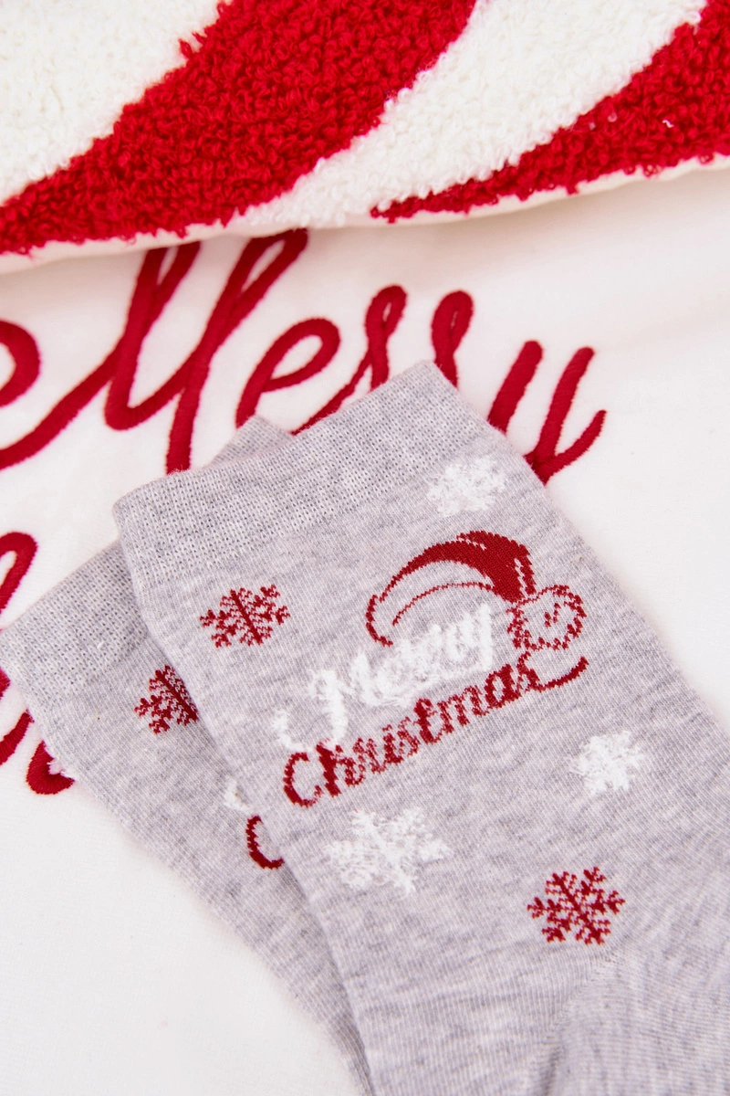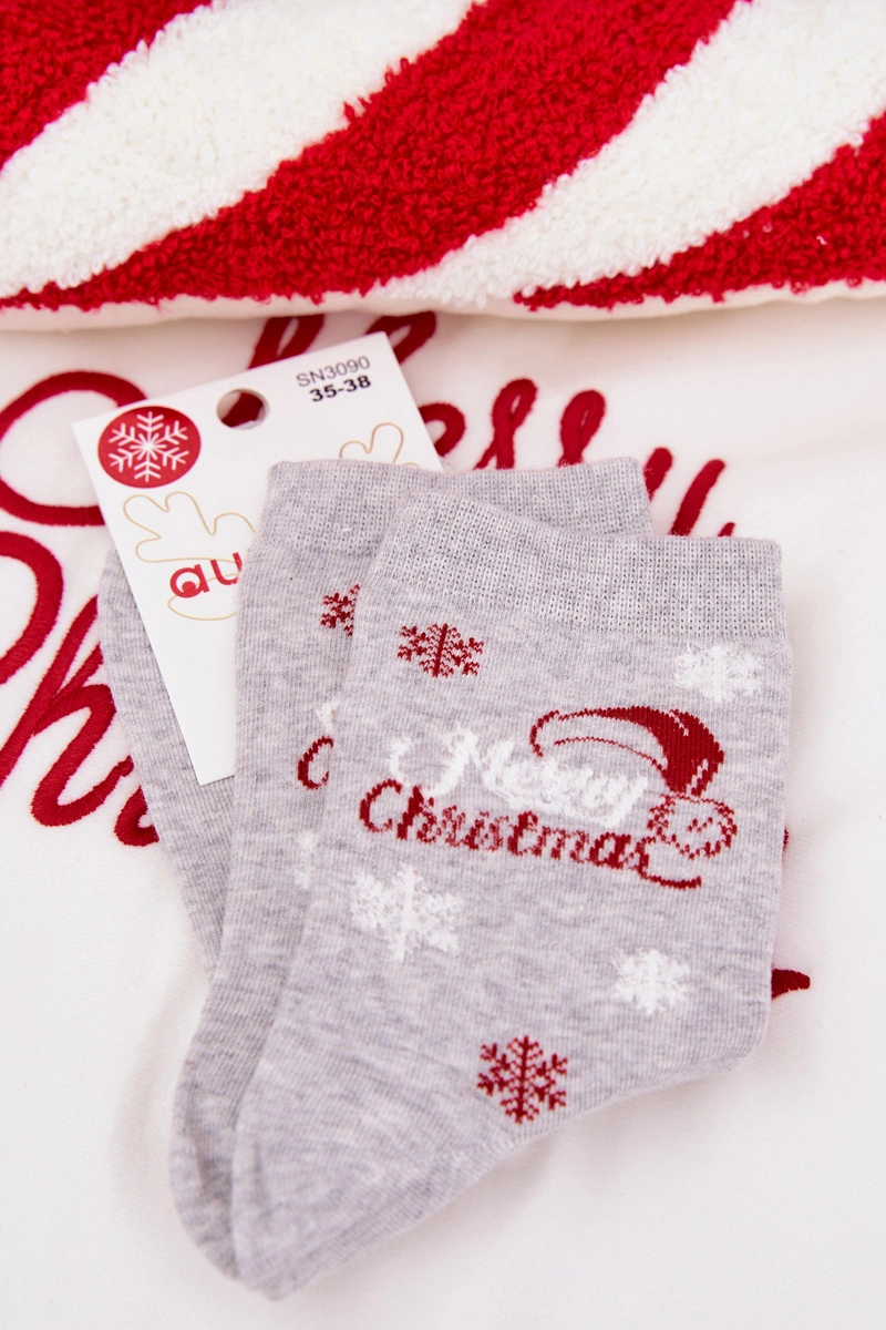 Skarpetki Damskie Świąteczne Śnieżynki Z Napisem Jasnoszare