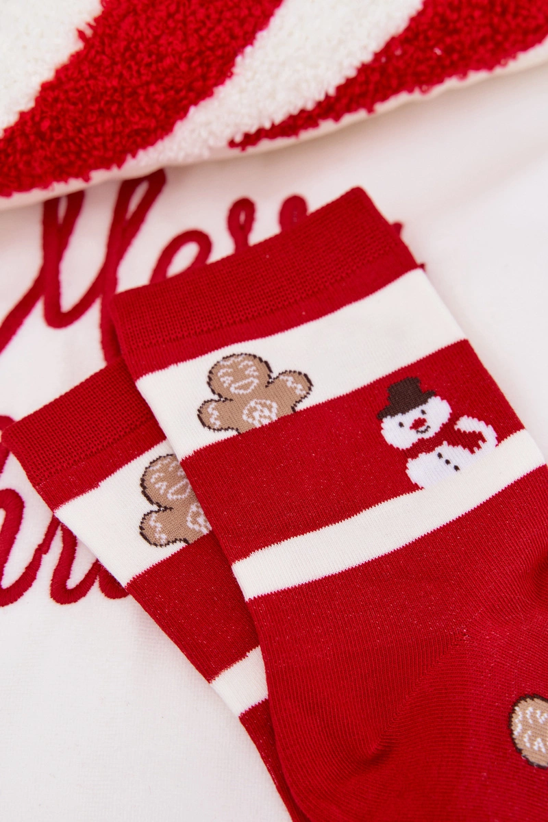 Skarpetki Damskie Świąteczne w Paski Czerwono-Białe