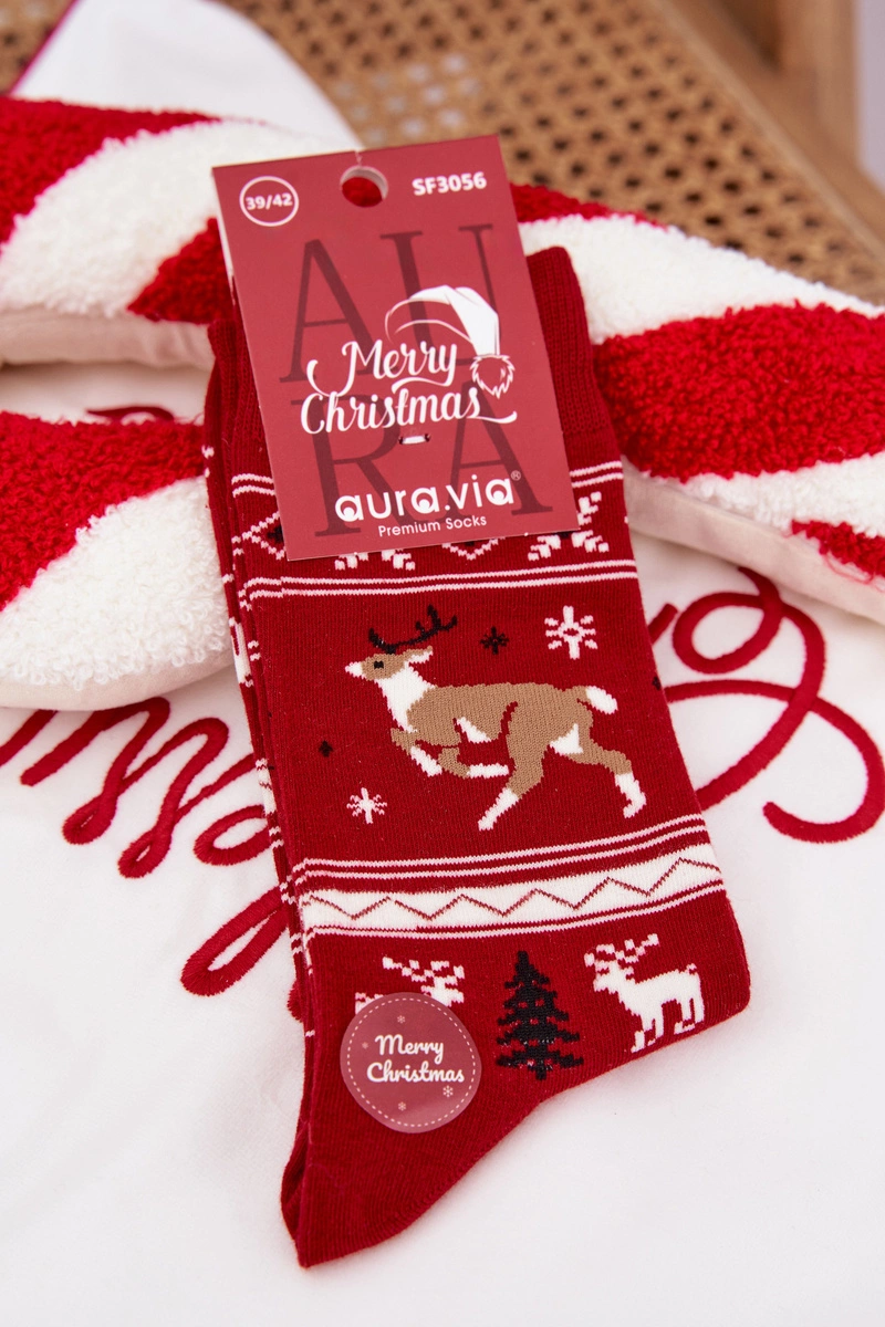 Skarpety Męskie Świąteczne Biegnący Renifer Czerwone