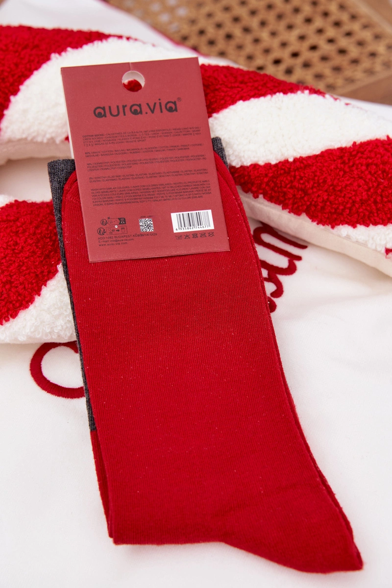 Męskie skarpetki świąteczne z motywem Mikołaja i zabawnym napisem to idealny dodatek na zimowy sezon. Wprowadzają do stylizacji odrobinę humoru i świątecznego nastroju, a przy tym są wygodne i przyjemne w noszeniu. Świetnie sprawdzą się również jako drobny, praktyczny prezent.