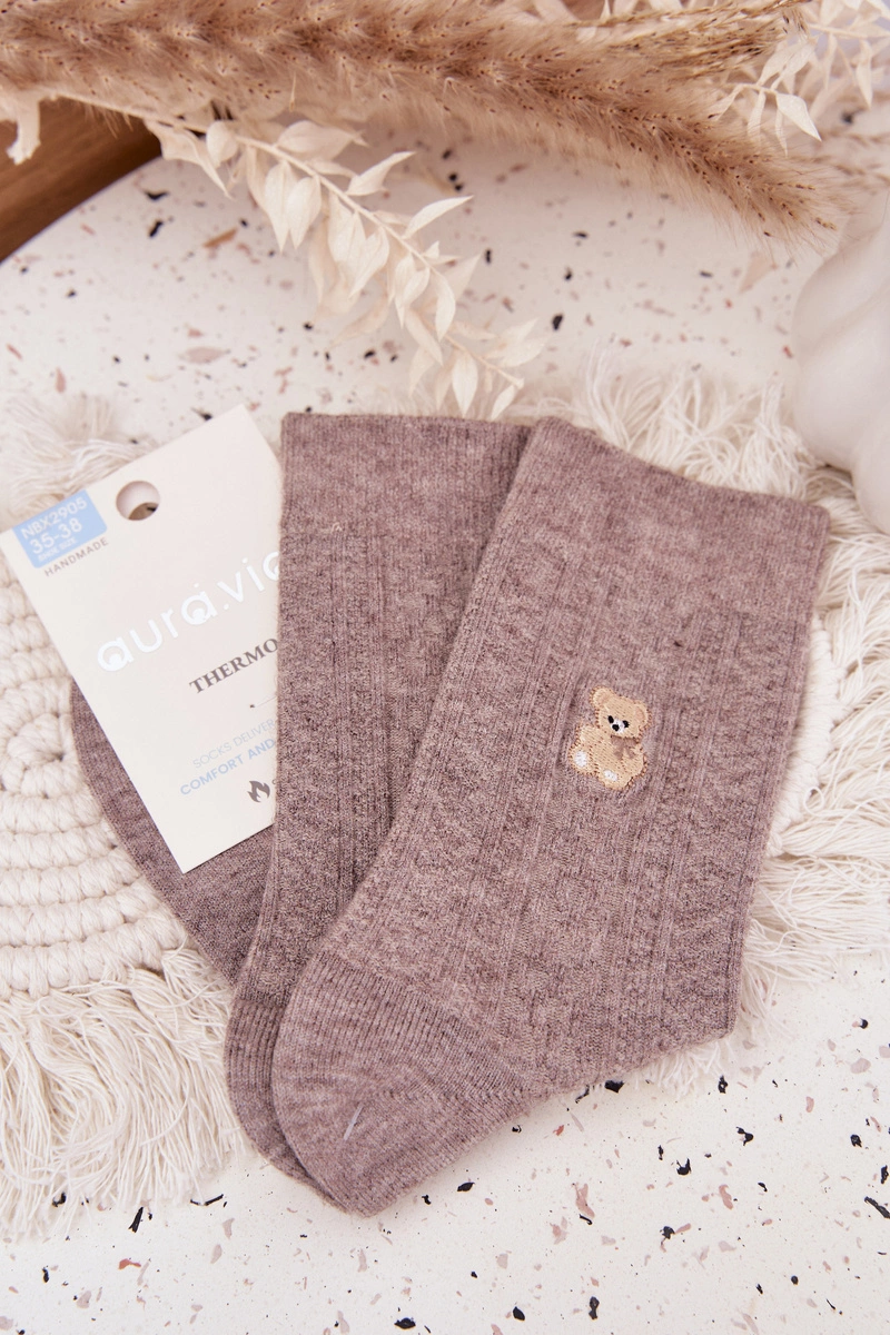 Ciepłe Skarpetki Damskie Z Wełną Miś Ciemnobeżowe