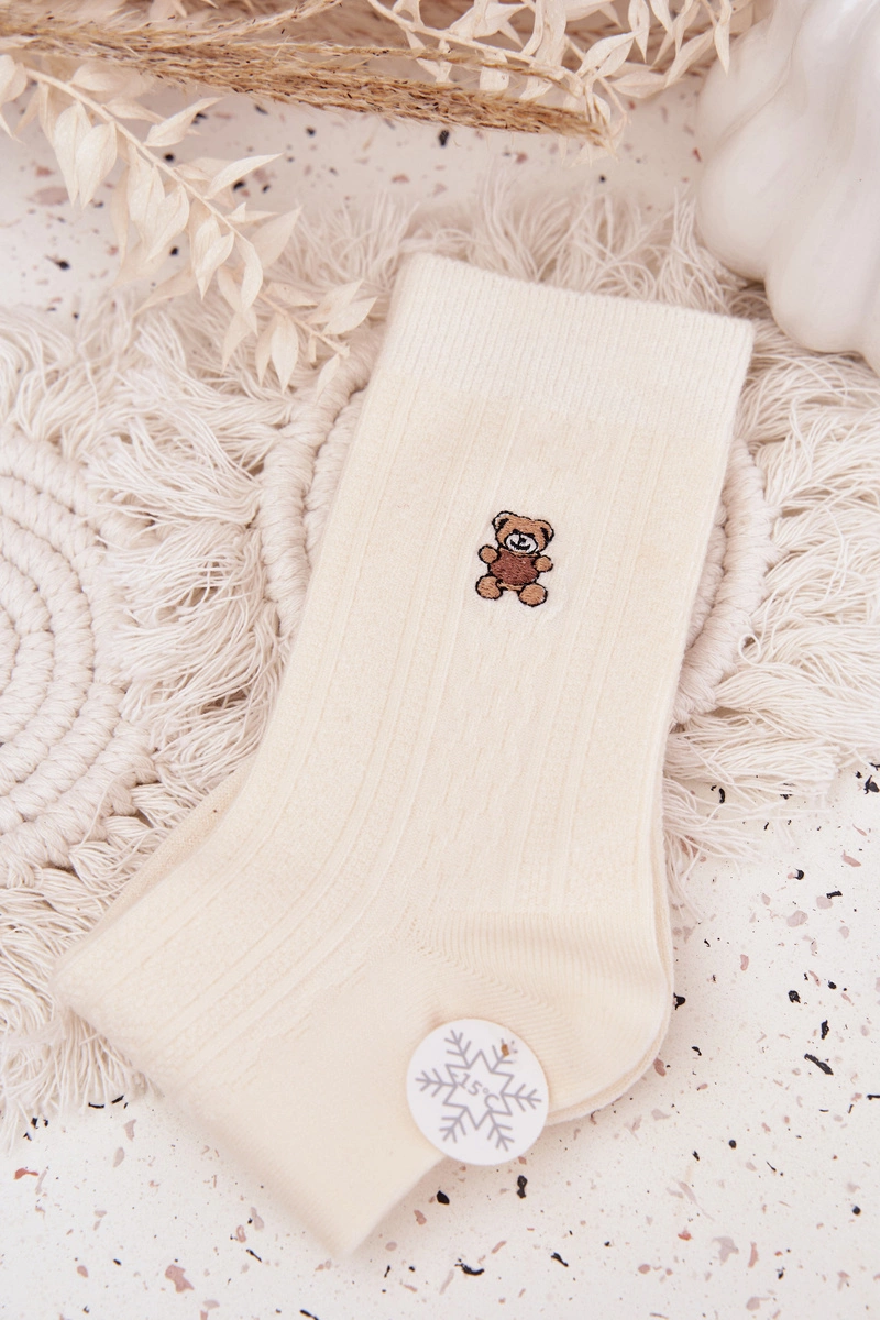 Ciepłe Skarpetki Damskie Z Wełną Miś Ecru